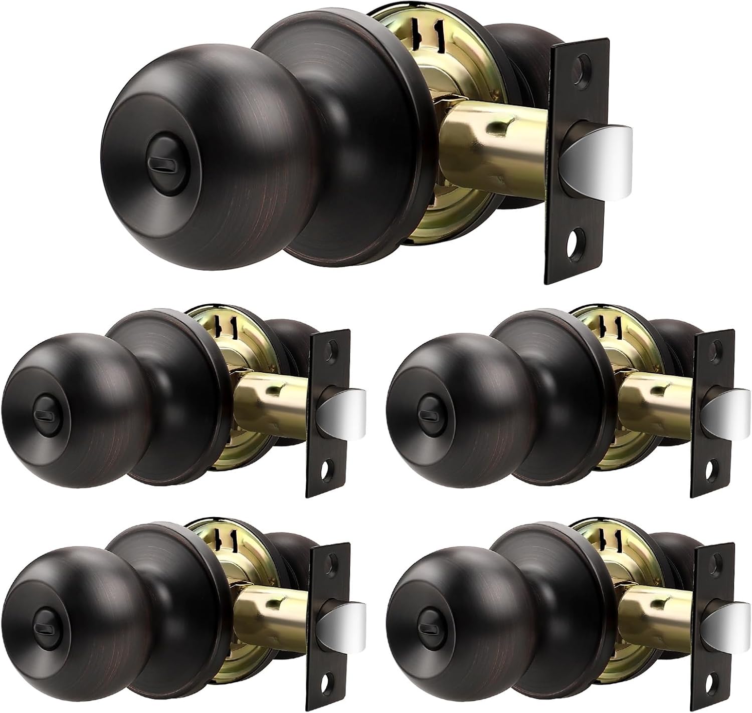 • Keyless Privacy Function: Interior door knobs can be locked internally with a thumb-button and unlocked externally with a coin in an emergency. Ideal for bedroom or bathroom doors, office doors, or other places where privacy is needed