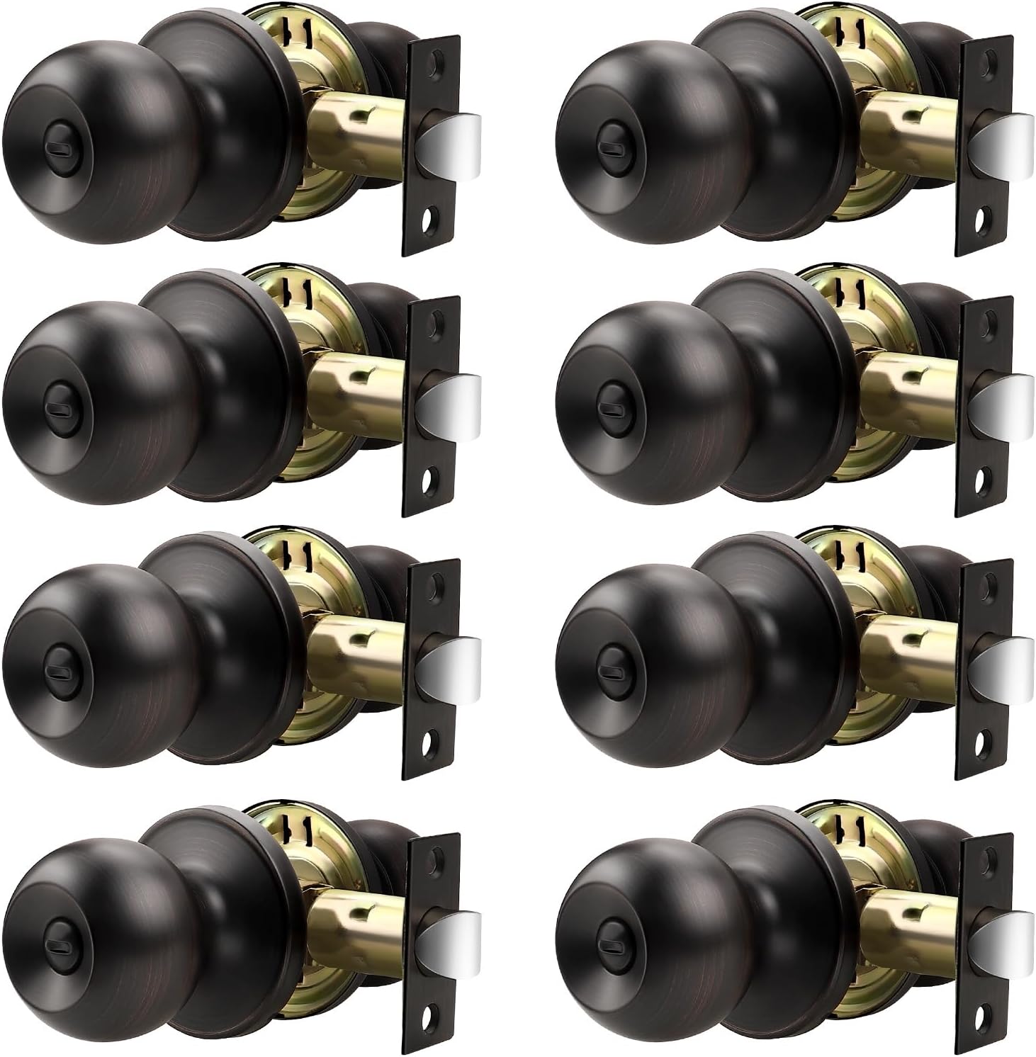 10 Pack Bathroom Door Knob, Door Knobs Interior Without Keys, Brushed Nickel Door Knobs for Bedroom and Office, Privacy Function, Modern and Sturdy Finish