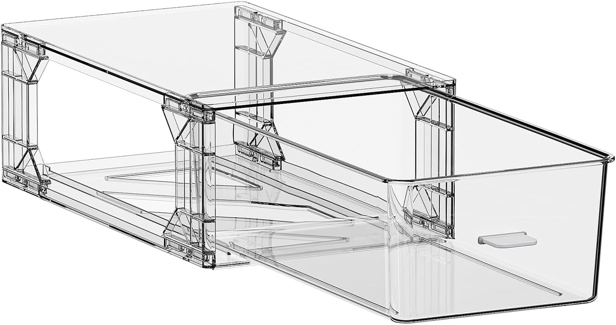 2 Pack Stackable Makeup Organizer,Modular Storage Bins with Handles for Fridge,Bathroom,Kitchen Under sink,Cabinet,Pantry Organization Drawer