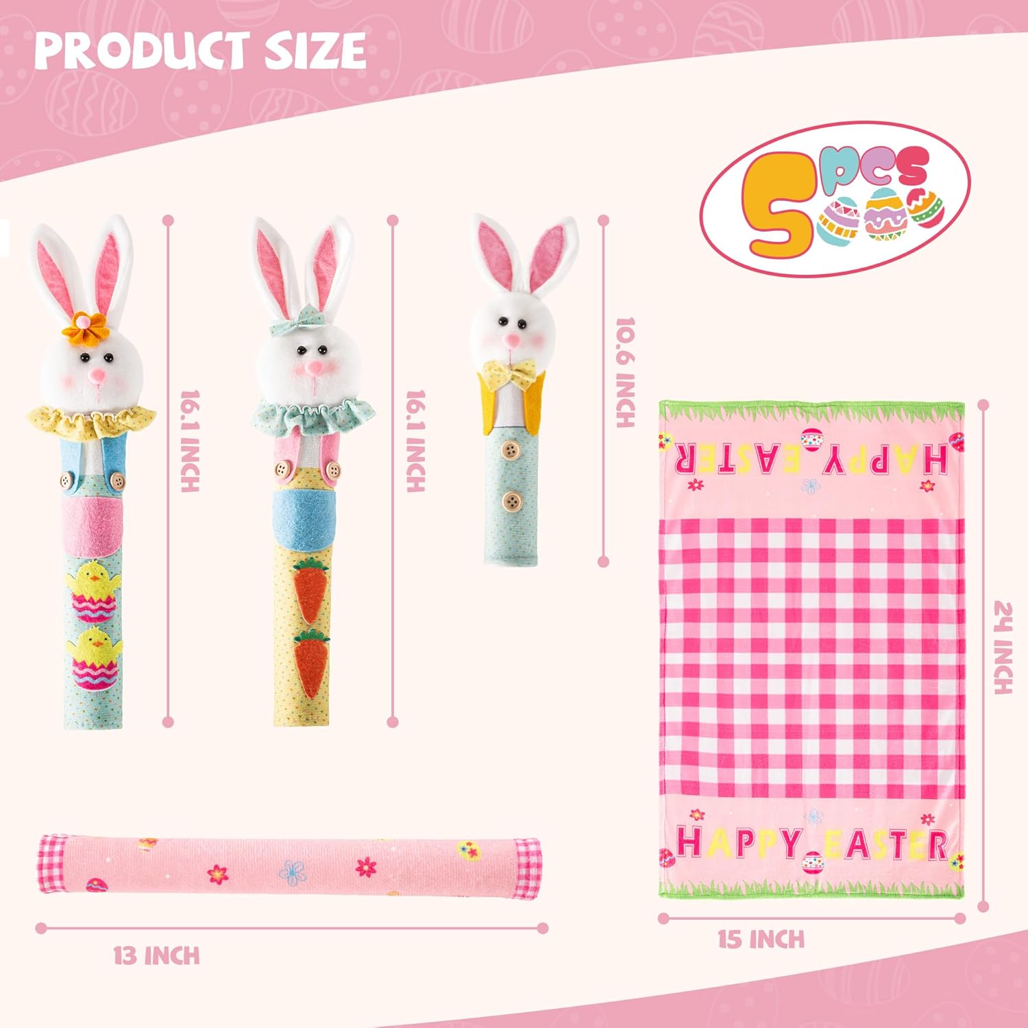 • Complete 5-Piece Set: Includes 3 long bunny refrigerator handle covers, 1 short handle cover, and 1 Easter-themed handle cover to decorate multiple kitchen appliances for the holiday season