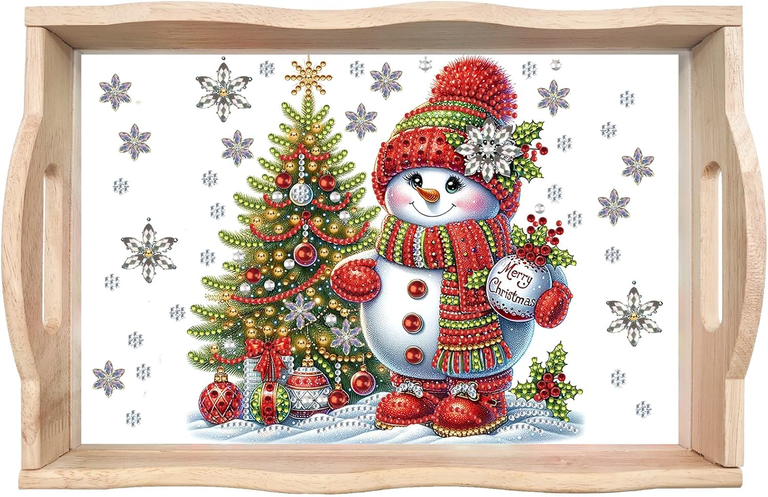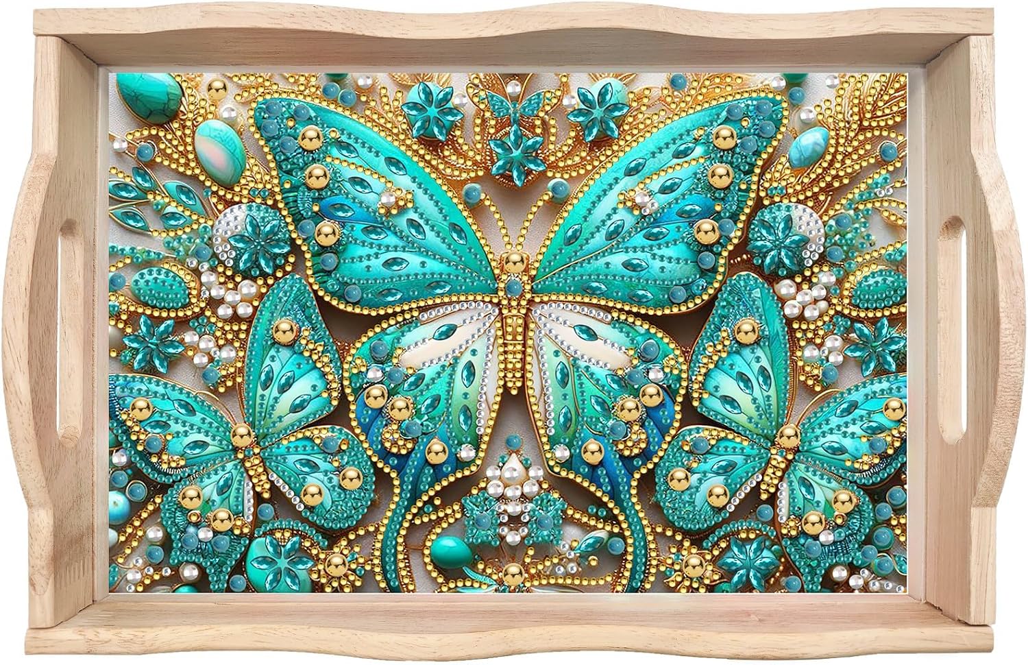BAYUNOE 2Pcs DIY Diamond Serving Tray Rectangular Breakfast Tray with Handles Handmade Diamond Art Painting Wooden Tray Dinner Plate for Coffee Living Room Home Organizer-06