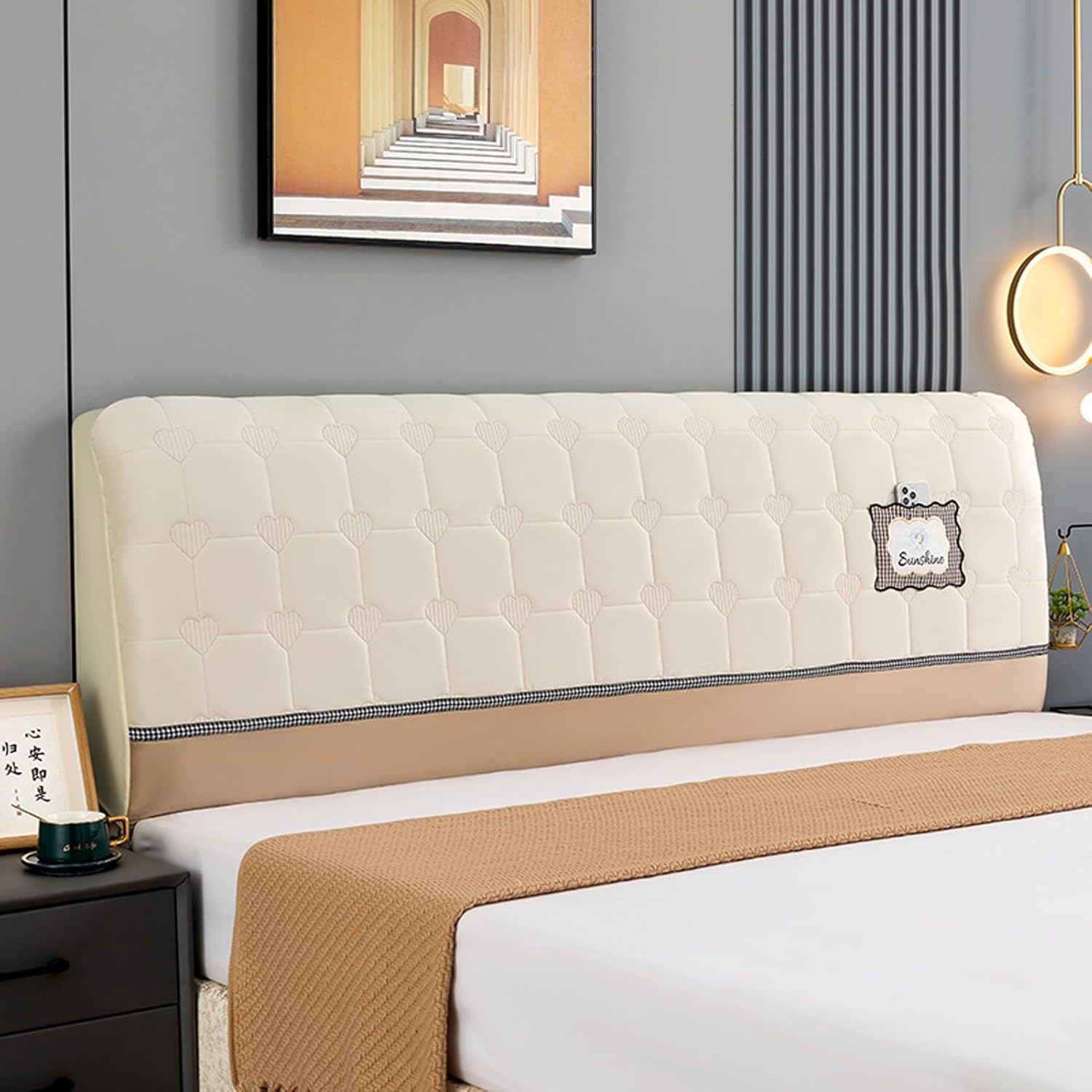 ۵ It is not only a bed headboard slipcover to give you extra softness and warmth, make you feel not so hard or cold in cold weather, provide a full protection to keep head board away from stains, spills, pet scratches and damage, but a decorative idea to update your broken and old bed headboard, totally cover up ugly marks to look new and fashion, enhance your bedroom decoration and add colorful addition.۵ 【Product Information】Name: Bed Headboard CoverMaterial: PolyesterSize: 150cm/59inch, 180cm/71inch, 200cm/78inch, 220cm/86inchStyle: Modern and Simple۵ 【Package Includes】1X Headboard Cover۵ 【Notes】--Please measure your headboard before purchasing (Note: Do not buy by the size of your bed).--Products for the physical shooting, pictures due to different shooting angles, there may be a slight color difference; Fabric products, the occasional thread is inevitable.