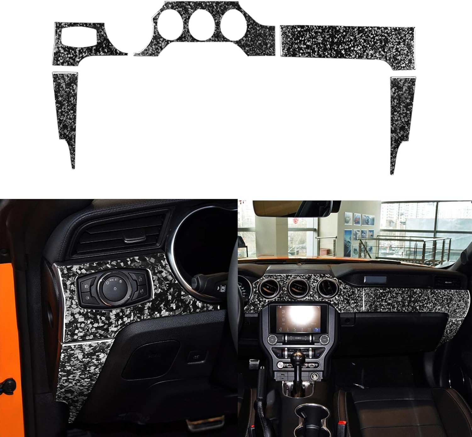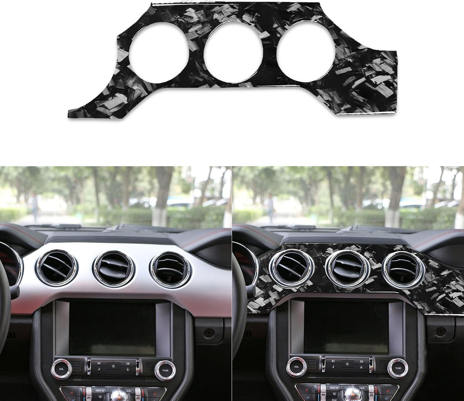 Car Dashboard Central CD Player Control Panel Navigation Screen Frame Trim Sticker Glossy Black Forged Carbon Fiber Decoration Compatible with Ford Mustang 2015-2020 Auto Interior Accessories