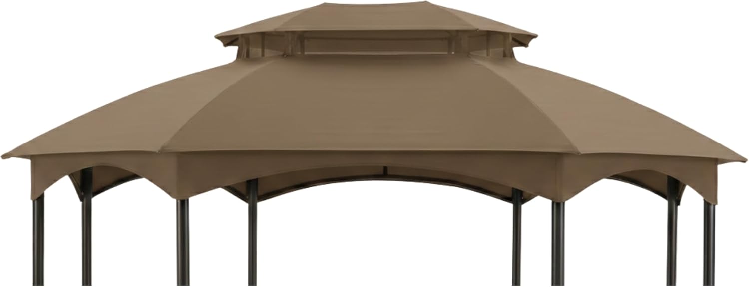 Replacement canopy top compatible with Manhattan 10’ x 12’ Gazebo, custom fit for model L-GZ1138PST, SKU: 810367910 sold at Big Lots and various retailers. Made from RipLock 350 polyester fabric in Beige with reinforced grid pattern to help limit tear spread. UPF 50+ UV Resistant, water resistant, and CPAI-84 fire retardant for outdoor use. Backed by a 1-year limited performance warranty with US-based customer support for fit and product questions. Replacement canopy only; metal frame not included.