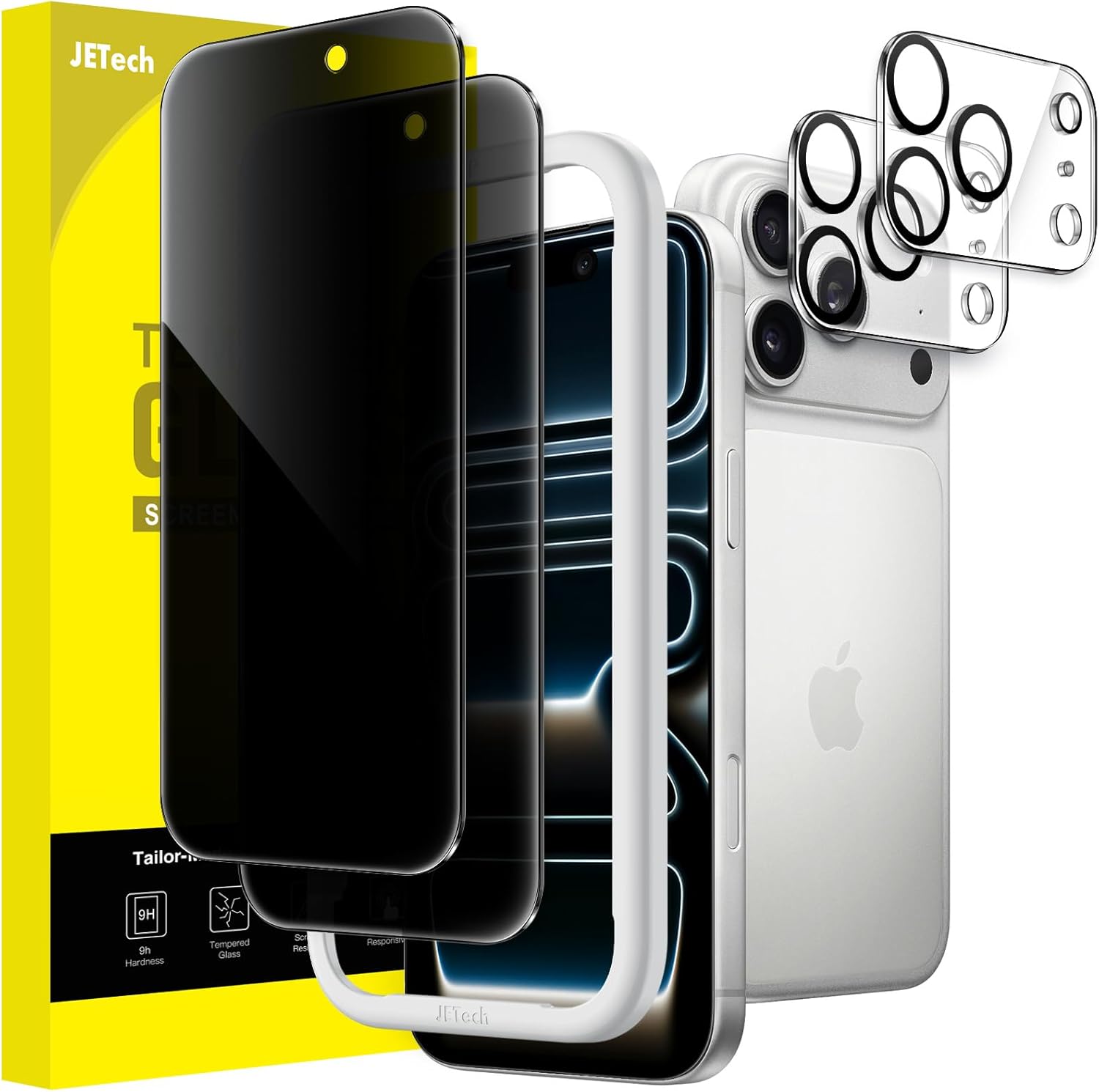 JETech Privacy Full Coverage Screen Protector for iPhone 14 Pro 6.1-Inch with Camera Lens Protector, Anti-Spy Tempered Glass Film, 2-Pack Each