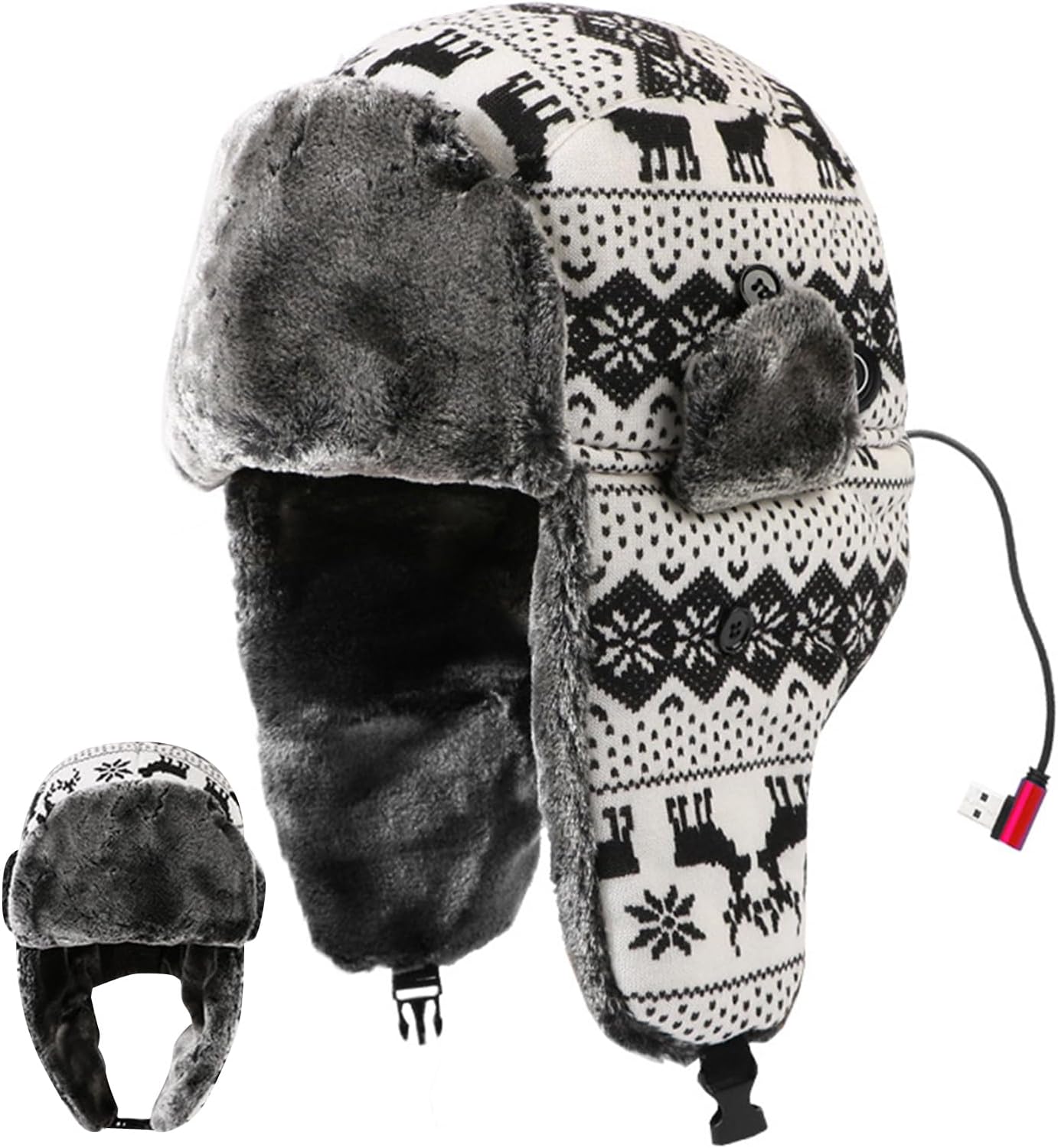 The USB heating head cover hat is designed to provide outstanding warmth for men, teens, and adults during cold weather activities. Featuring a plush interior and wind-resistant exterior, this hat provides comfort while keeping you warm in harsh conditions. With ear flaps included, it gives added protection for your ears, making it suitable for cycling, walking, commuting, or fishing. The three-setting heating system allows adjustable warmth designed to your needs, providing convenience and practicality. Suitable for both him and her, this versatile accessory is suitable for outdoor enthusiasts seeking dependable insulation against the cold. Experience improved comfort and functionality with this innovative USB-powered heated hat, designed for everyday use in winter environments.SpecificationProduct name: Heated hatFabric: silk plush fabricLining: Thick panel pleated cottonMaterial: polyester fiberProduct size: Hat circumference: about 58-60cm/22.83-23.62 inches, Hat depth: about 36cm/14.17 inchesHeating part: alloy fiber wire heatingHeating temperature: low temperature: 35-40℃, medium temperature: 40-50℃, high temperature; 50-60℃Power supply interface: USB-5V/2AList1 pieces * Heated hat1 pieces * USB cable1 pieces * Instruction manual(mobile power bank not included)Note:1. Due to lighting effects and display angles, there may be color differences in the product.2. Due to manual measurement, there may be errors in product size, please understand.3. Does not include mobile power supply and cannot store electricity. You need to connect the power supply when heating.