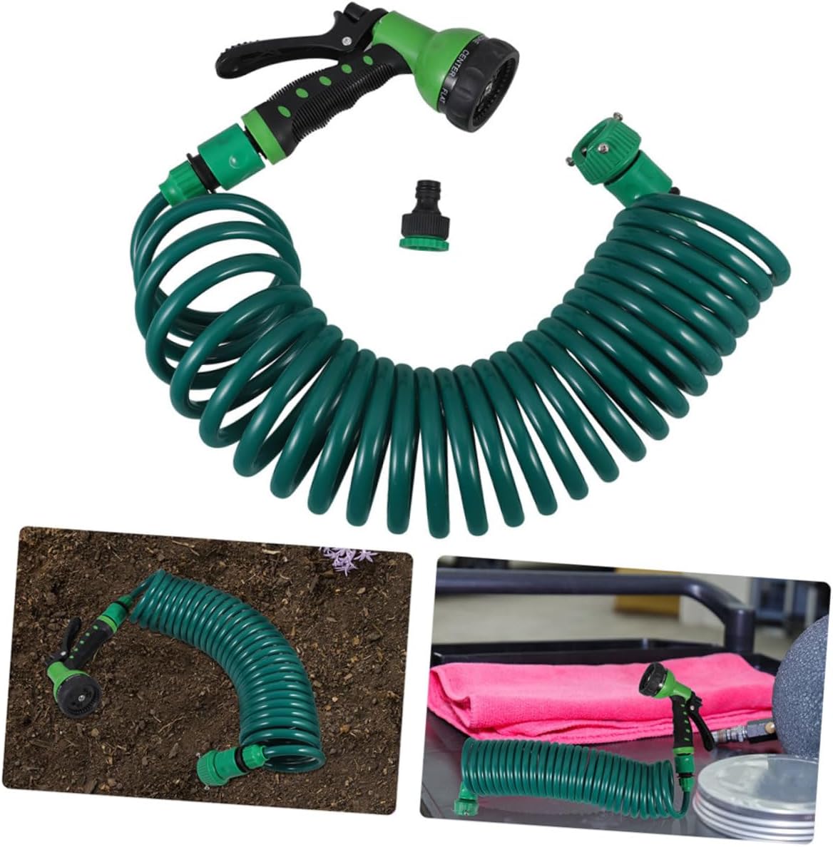 Package Include 1 water 1 x plastic car wash water tool 2 x plastic quick connectors 1 x internal thread plastic faucet connector 1 x non-threaded faucet connector Features -Color:Green hose -Adapter size: 3/8" garden car water hose -Size:1500.00X1.00X1.00cm/589.50X0.39X0.39in curly water hose -Material:EVA heavy duty hose -Product Info:Car wash water spray gun set -Constructed from durable eva material, this hose is designed to resist tangling and wear, ensuring performance and reliability for all your washing needs water . -Featuring a retractable hose design, this set provides convenient storage and easy portability, making it simple to use and store without taking up much space retractable hose. -Suitable for home use, this spray set is not only ideal for washing cars but also great for watering gardens, making it a versatile addition to your household tools small hose. -This hose allows to reach every corner of your vehicle, providing a thorough and comprehensive cleaning experience car washing coil . -Allowing you to adjust the water pressure and pattern for various cleaning tasks, ensuring optimal results every time expandable hose.Goods Informationhose retractable Its retractable design makes it easy to store and carry, making it an for car washing, garden watering, and more.coil garden hose Simplify your outdoor chores with our Multi-Function Car Wash Spray Set.car wash hose flexible The adjustable spray modes provide the suitable water pressure for different tasks, while the coil hose offers flexibility and durability