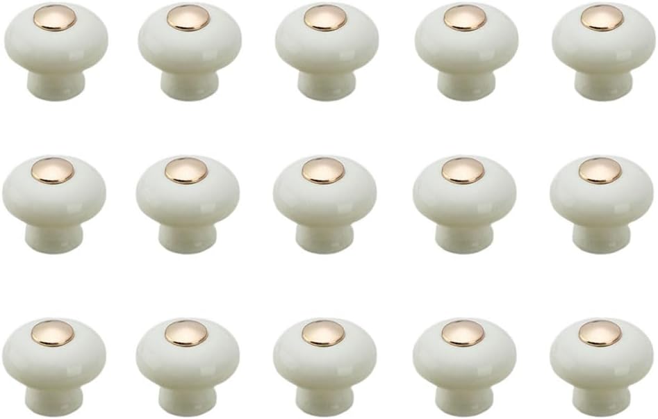 10 Pack Cabinet Knobs Dresser Knobs Drawer Knobs Ceramics Kitchen Cabinet Pulls Handles Hardware Vanity Handle Decoration White (Gold, Single Hole)