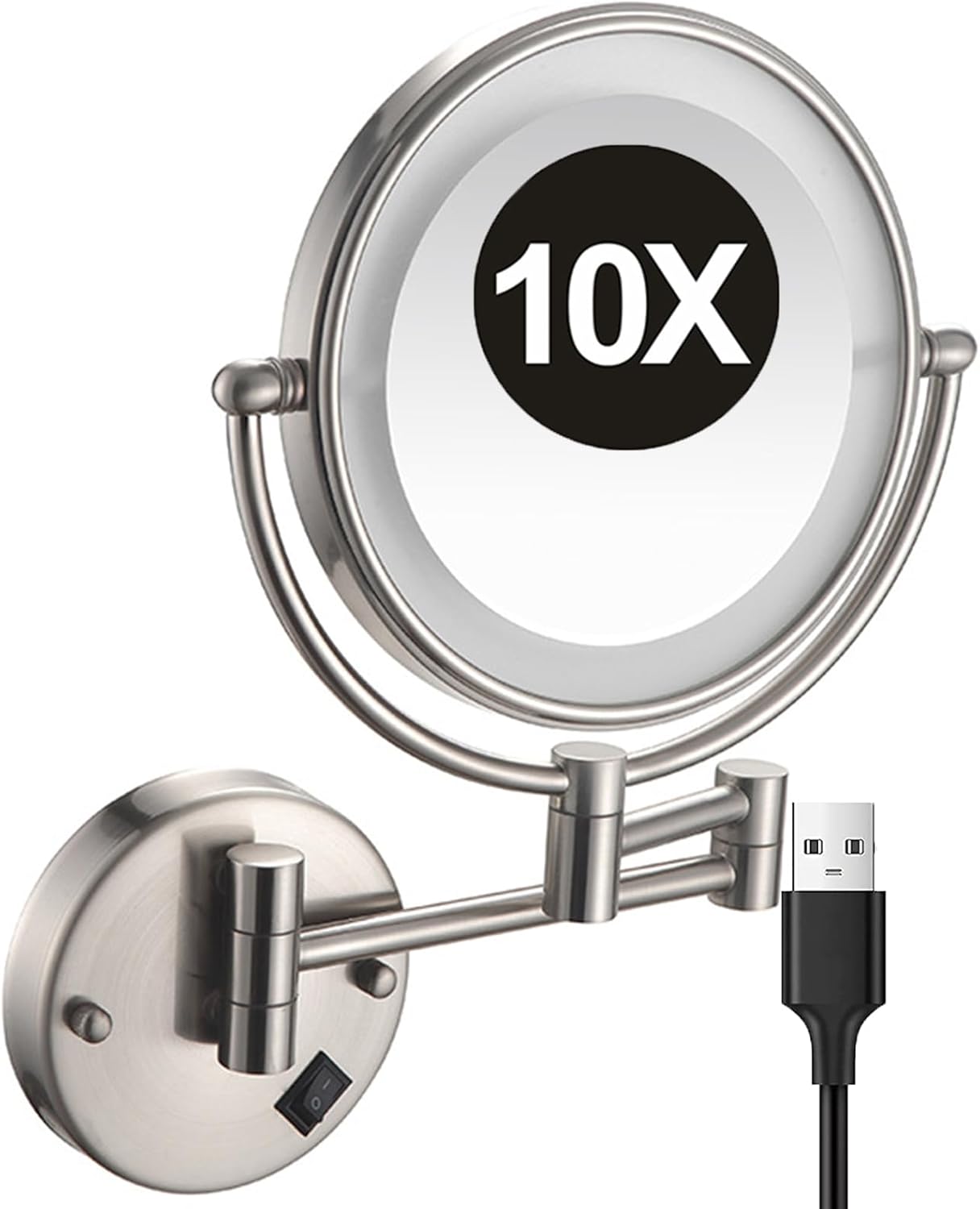We specialize in vanity mirrors, we care about the quality of mirrors. We always choose high-quality metal brackets and glass mirrors, and adopt advanced multi-layer electroplating anti-rust technology to make our vanity mirrors rust-free, anti-corrosion and durable.Item Type: LED Lighted Makeup MirrorType: Adjustable Wall Mounted Shaving Vanity MirrorColor: Silver, Black, Brass, Rose gold, Brushed gold, Gold, NickelInput voltage: AC: 85~265VLighted: YesMaterial: Brass + Stainless steel + GlassFeature: lilluminated, 2-face, magnifying, dual arm extend360 Degree Rotated Mirror: Easy to adjust the angle you wantDouble sided: Normal and 3X/5X/7X/10X MagnifyingShape: RoundMirror Size: 8 Inches (20cm)Telescopic Range: 26.5cm-45cmSwitch: push switchPower Supply Mode: Hard-Wired (5W), Plug-In (5W), USB Charging (3.5W)-2600mahInstallation Method: Wall-MountedLED Quantity: 42PCSLED Life: 10,000 HoursLight Luminance: 6,500KWarm reminder:The project may be slightly different from the image due to the display of lights and screens.The distance between you and mirrors is better not more than: 30cm(3X); 20cm(5X); 15cm(7X); 10cm(10X)