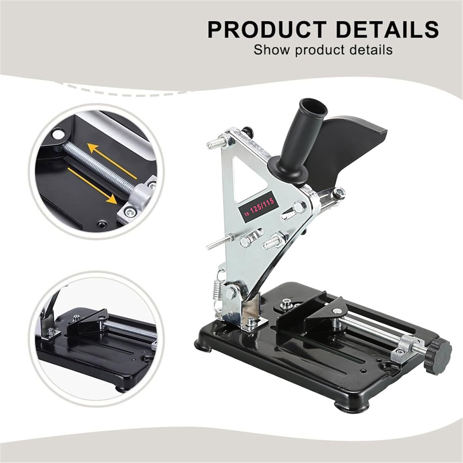 • Engineered with high strength alloy steel, this durability angles grinder holder withstands rigorous daily use while its mechanism prevents accidental slips during precise shaping
