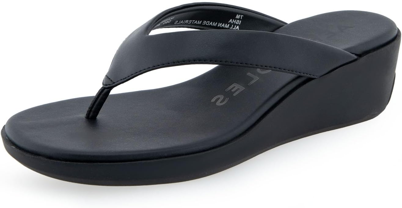 The Aerosoles Isha sandal is an exquisite piece of footwear, crafted with a sleek thong upper and a cushioned footbed inset atop a molded, lightweight unit wedge. Its refined silhouette and superior durability make this sandal perfect for special occasions and everyday wear alike. Experience the luxury of Isha today.