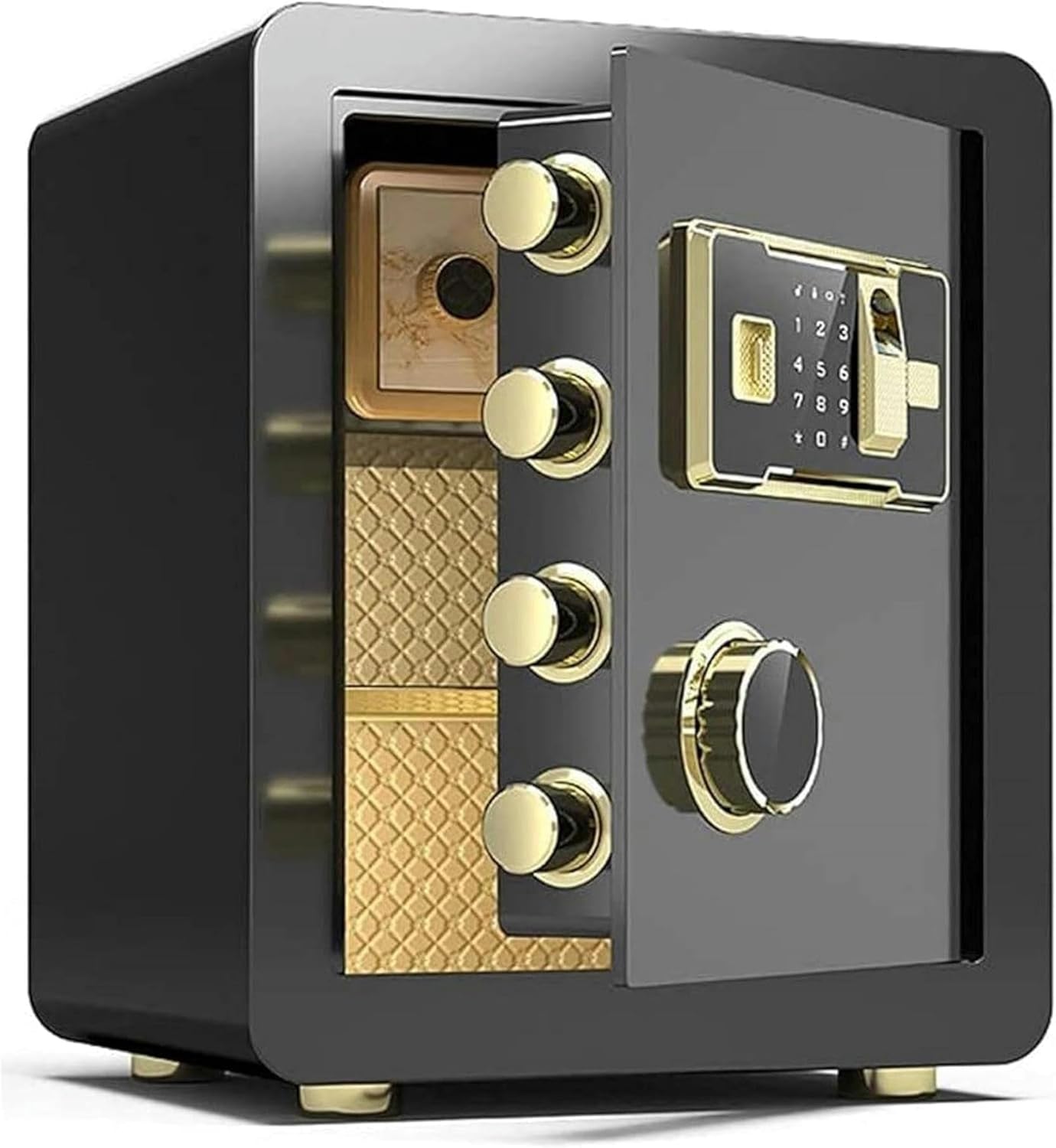 • Resistant Material: The safe adopts 5 mm high density thick steel solid door panels, it has a higher damage prevention coefficient, laser cut the entire door without lever points, antipalanca and antiperforation, safe and reliable.The resistant steel safe can provide a high degree of safety for all its value objects.