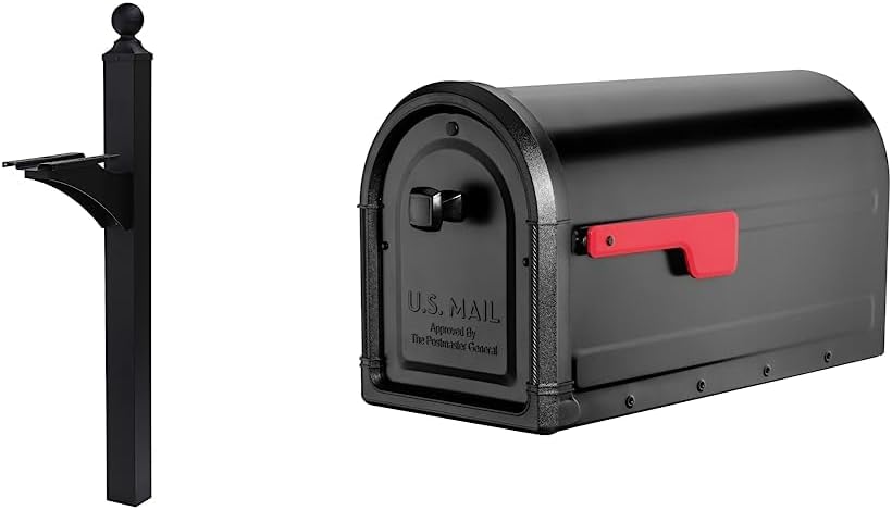Architectural Mailboxes Landover Aluminum Mailbox Post, BlackThe Landover universal mailbox post is constructed of reinforced extruded aluminum and steel to resist rusting and provide an extended service life. The decorative aluminum post and finial, with a steel cross arm, features a unique and stylish design that will enhance the curb appeal of any property. The Landover will accommodate any standard, large or extra-large mailbox. This post comes complete with a universal mounting bracket and mounting hardware, fashioned with a hollow stem to slide over a 4 in. x 4 in. wood post (sold separately) for quick, hassle-free installation.Architectural Mailboxes 8950B-10 Chadwick Postmount Mailbox, Large, BlackArchitectural Mailboxes' Chadwick mailbox is durably made from galvanized steel for longevity then fully powder coated in a black finish with contrasting nickel flag. The Chadwick is equipped with an attractive cast aluminum handle and textured molded resin frame.