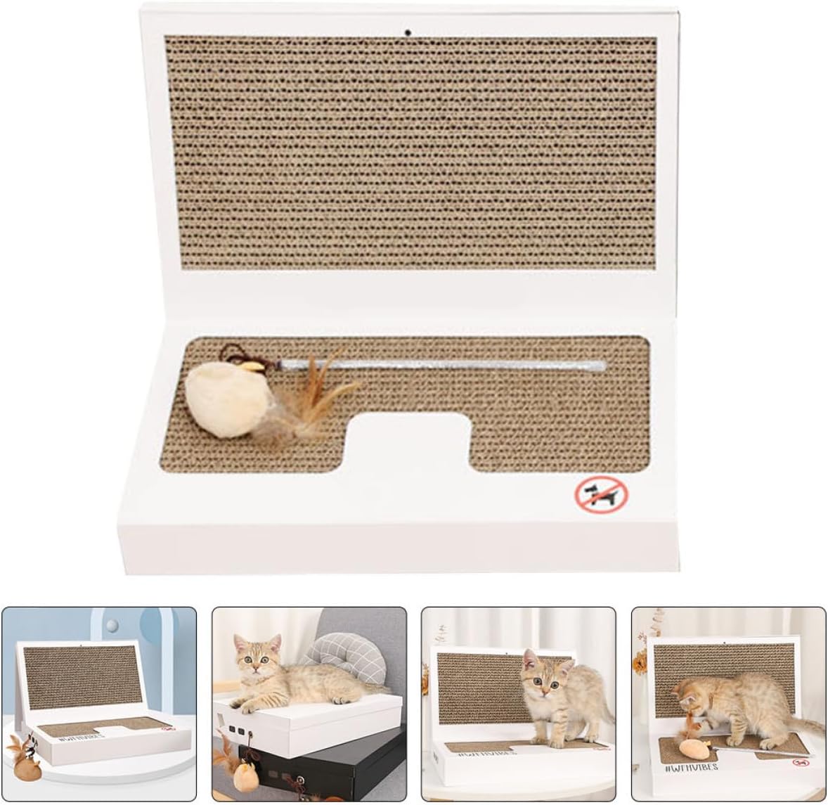 Package Include 1 x Cat Scratching Board 1 x Cat Teaser Stick Features -Product Info:Laptop cat scratch board -Material: Corrugated Paper -Cat can rest and play, let your love pet to entertain themselves with our perfect product Foldable Cat Scratching Board. -Super sturdy construction, well-balanced design. Hurry up and choose one for your cats Scratching Board . - and practical, cat can grind claw, abrasion resistance, and it is portable as well Cat Scratching . -With it, the cat won't scratch your furniture anymore, and they will definitely have fun with the Funny Scratching . -Creative laptop design can be nice decoration for home, and it can easily match with your furniture Cat Scratching Board.Goods DescriptionCat Scratching Do you want to give your cat an interesting ? This cat scratching is a great choice for you! Designed with the laptop shape, unique and funny, which can let your cat relax, exercise and have fun at home without taking up too much space.Cat Scratching Plaything Cats can scratch and sharpen their claw without damaging your own furniture