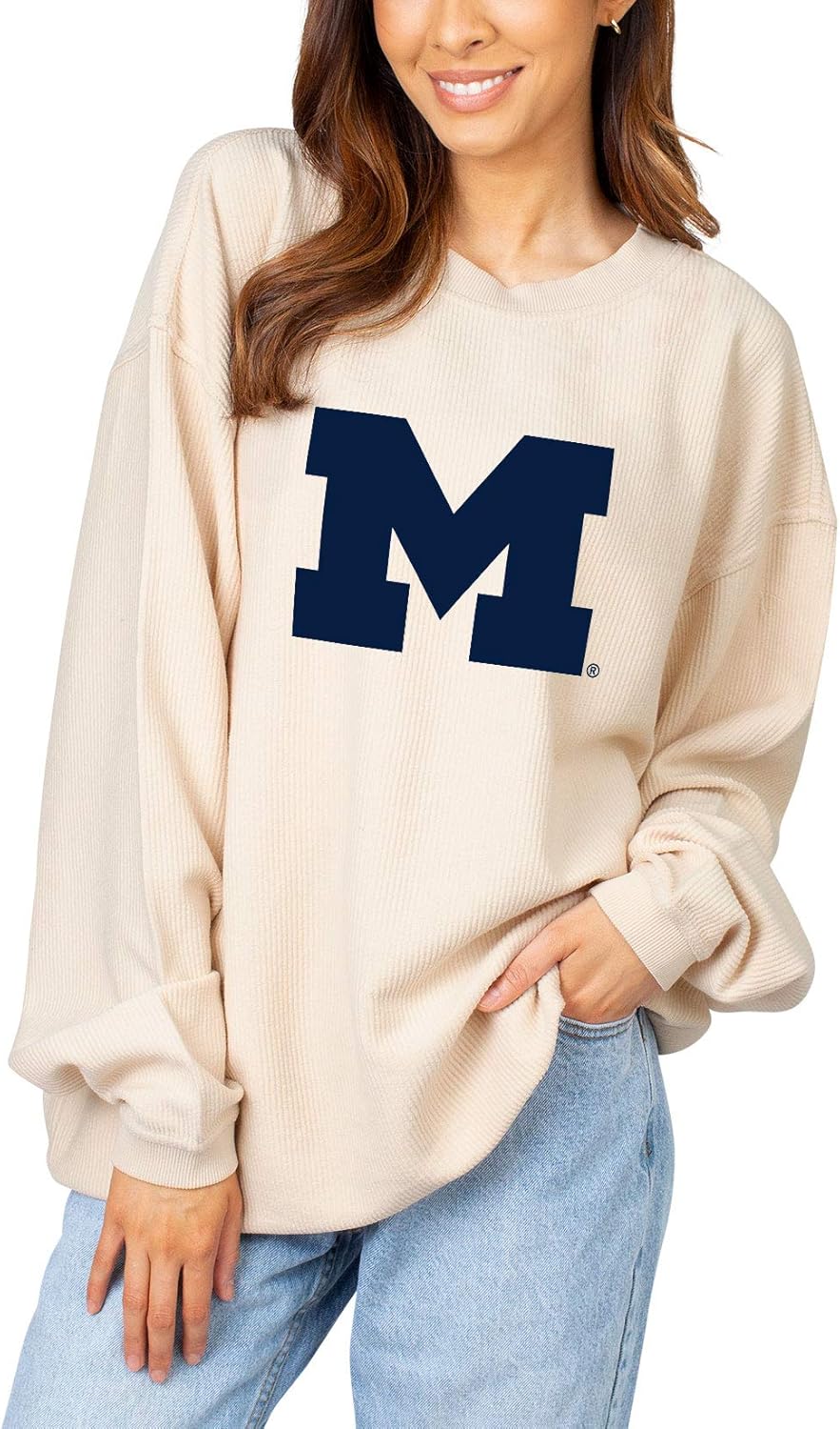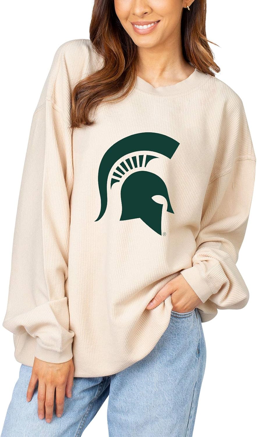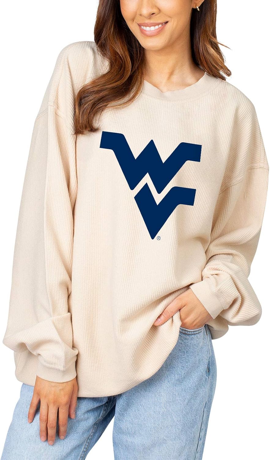 The classic corded crew features our favorite washed corded fabric features a ribbed crew neckline, cuffs, and hemline. This 100% Cotton corded fabric is super soft for maximum style and comfort. Support your favorite team while staying on-trend with the NCAA officially licensed graphic.