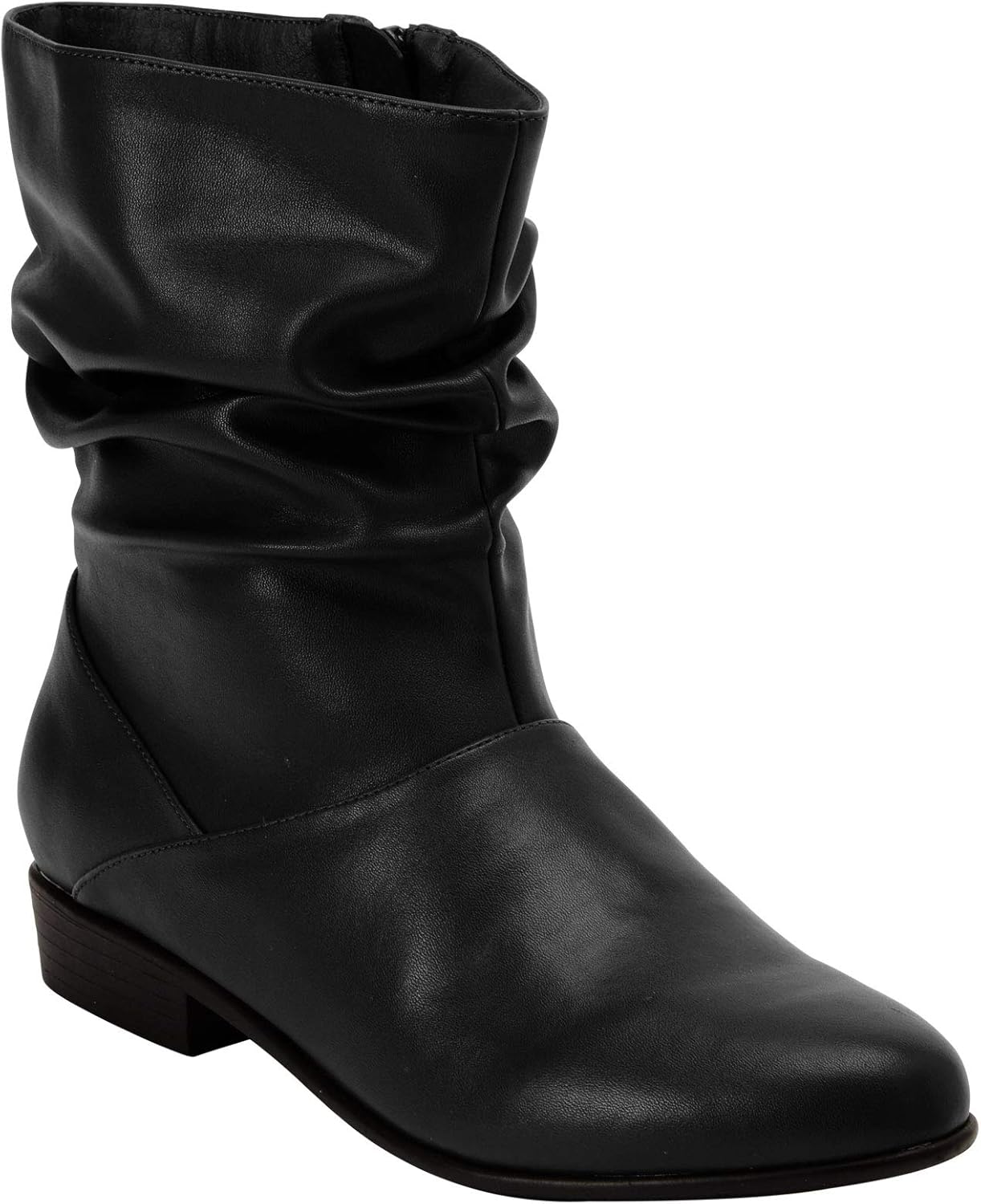 Madison wide shaft, scrunch bootie is made for for an easy fit in the must-have colors of the season. Smooth, man-made upper Side zip Easy low height Cushioned lining 1" heel Imported Women's medium, wide & wide wide shoes and boots, Madison tall boot by Comfortview in full & half sizes 7-11,12 M, W, WW