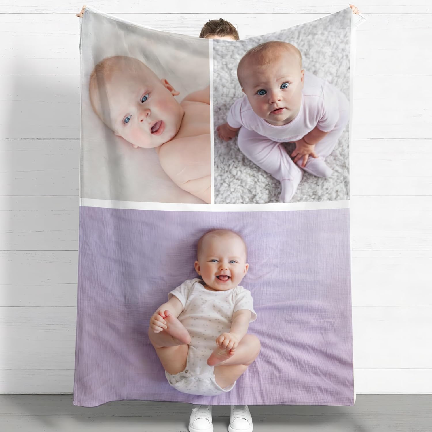 Custom Flannel Blanket with Photo Text Personalized Single Sided Printing Throw Blanket for Adult Kid, Perfect Home Decor Gift for Lover Wife Husband Family Birthday Valentines Christmas Halloween