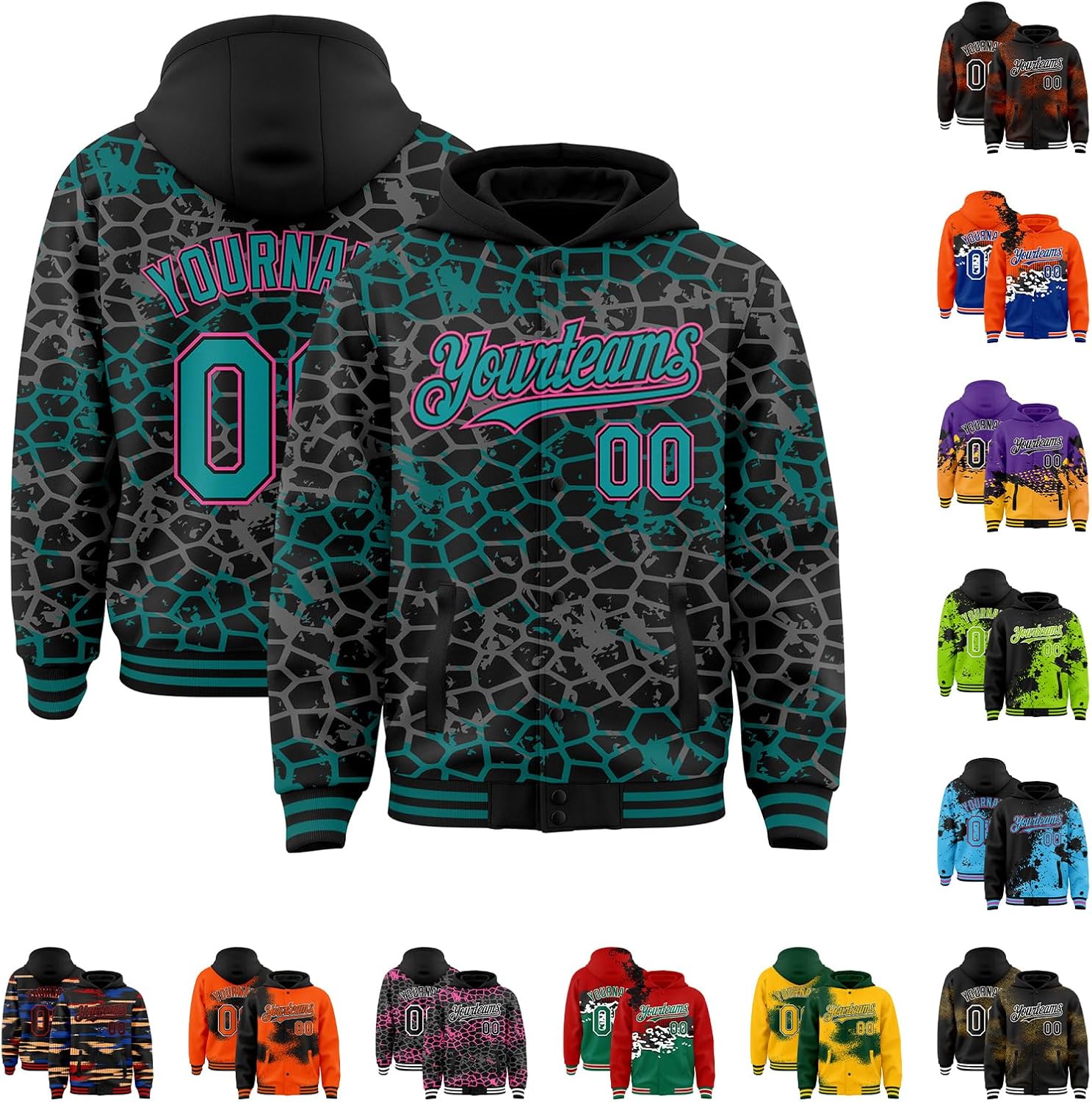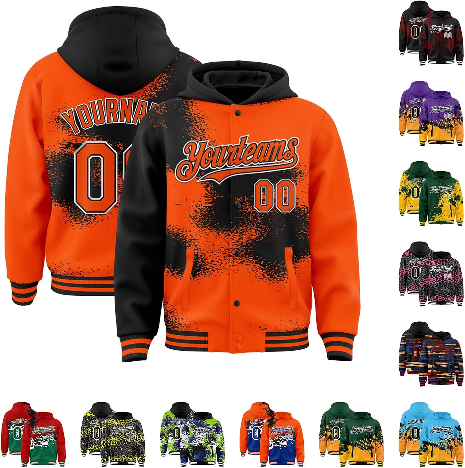 Custom 3D Pattern Full Button Hoodie Jacket Personalized Stitched Team or Players Name Number Logo Embroidered Letterman Jacket Gradient Varsity Jacket Full Snap Polyester Wool Fabric Warm Winter Windbreaker Lightweight Novelty Graphic Baseball Jacket for Men Women Youth Boys Girls With our varsity jackets, you have the freedom to choose the colors, fonts, and styles that reflect your personality. Every detail is carefully crafted, from the letter patches to the ribbed cuffs and collar, it offers exceptional warm and durability, ensuring you stay stylish and cozy in any weather. How to customized your personalized varsity jacket? Step 1: Choose the color that you want, click The "Customize Now "button; Step 2: Please choose your the size, inside lining types of you want; Step 3: Enter your name or player name, number and the Logo that you wanna design; Step 4: An unique customized graphic baseball hoodie jacket you want finished. Specifications: ✔*New Varsity Jacket ✔*Material: Highest Quality Polyester Wool ✔*Embroidered Craft: Stitched Team or Player Names, Numbers, and Logo ✔*Two Types of Inside Lining Material: Lightweight & Quilted Warm Fabric Lining ✔*Full Button Front ✔*Varsity Letterman Baseball Jacket with Hood Design ✔*Two Front Pockets & Two Interior Slip Pocket ✔*Rib-knit Elastic Cuffs & Waistband: Soft and Comfortable ✔*Exquisite Stitching, Fresh and Washable ✔* Machine Washable & Hand Washable, Please Don't Bleach, Tumble Dry Low(Natural Air Drying Recommended) Whether you're a student athlete, a sports enthusiast, fashion icon, or simply looking to add a touch of nostalgia to your wardrobe, our built hooded varsity letterman jacket is the perfect choice. Note: All sizes are US sizes, please check carefully before placing an order. The colors may exist slight difference due to different screens.