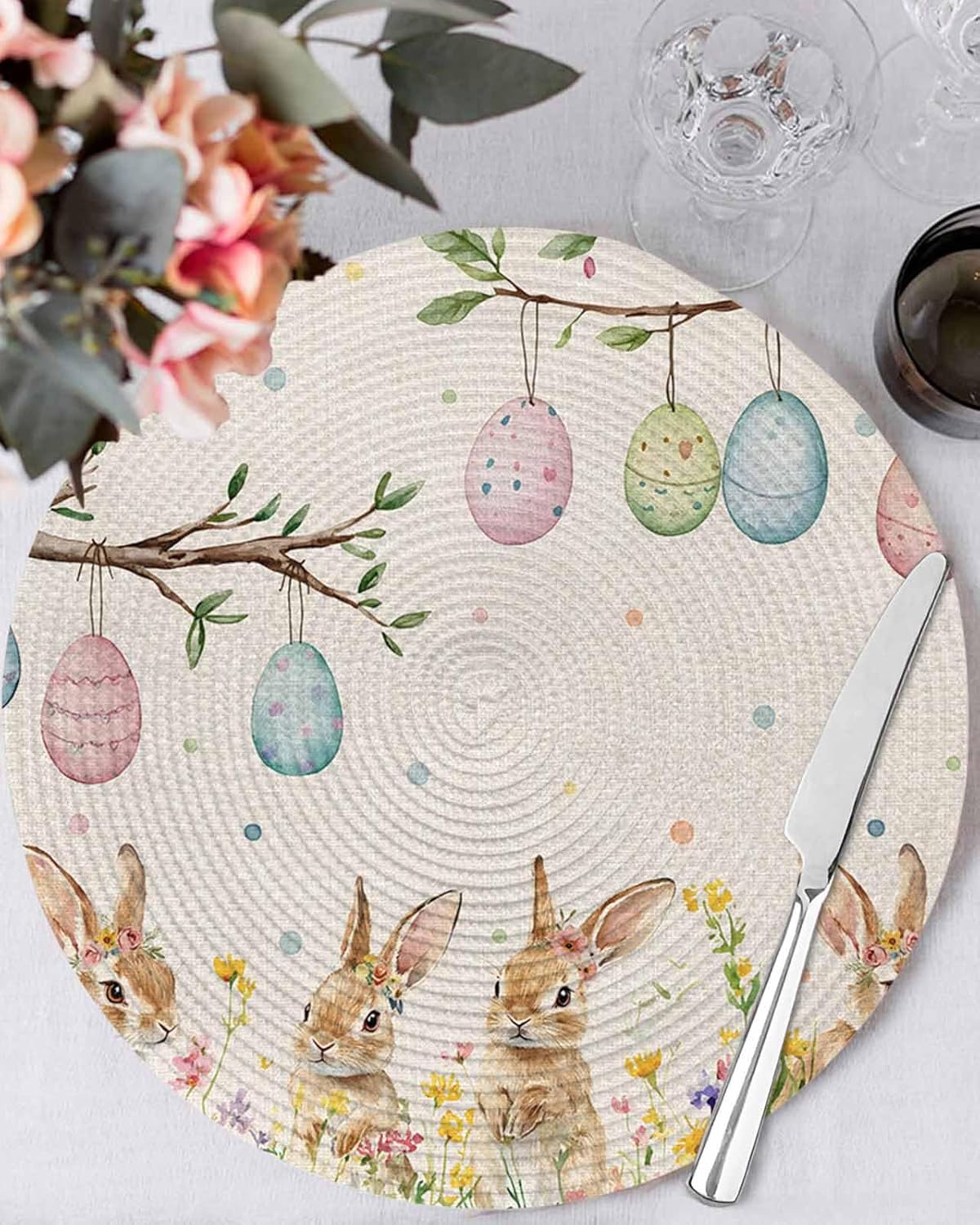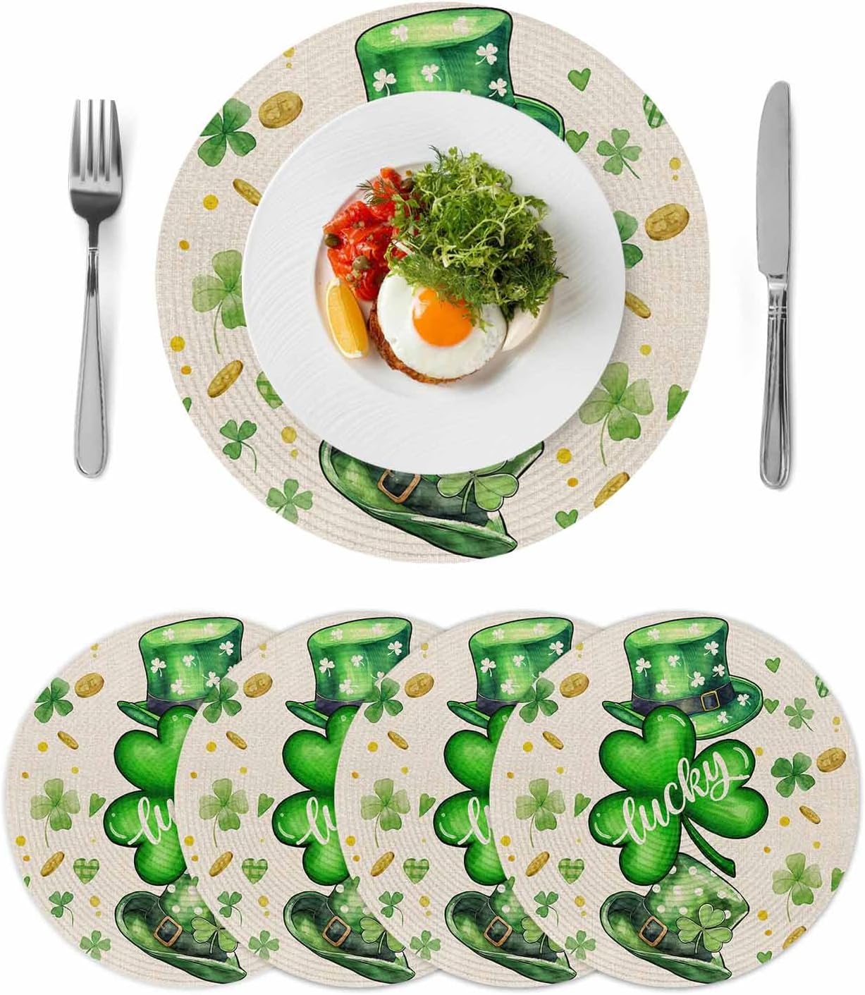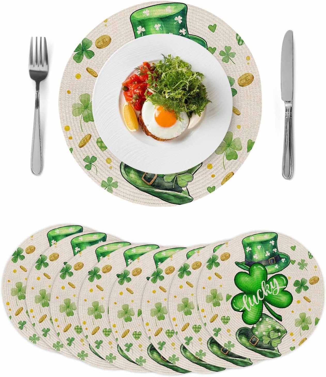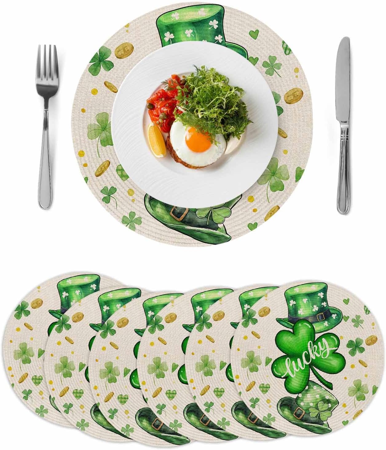 Elegant Round Woven Placemats——Enjoy Your Mealtime [Why Choose Our Place Mats] - Silent: Place mats are thick, soft, and durable, and they effectively reduce the noise made by plates and cutlery. - Thermal Insulation: These place mats durable, long-lasting place mats resist wrinkles and heat up to 80 degrees Celsius. - Easy to Store: The placemat is made of soft material. You can easily roll the placemat for convenient storage in drawer. [Use It The Way You Like] - Our placemats have a wide range of applications. In addition to meal time, you can also use them when cooking, working, and daily decoration. - For example, they can be placed under furniture such as vases, computers, cups, ashtrays, etc. - In addition, the unique patterns of these placemats can also make the decoration style of your dining table, coffee table, guest table, and work table even better. [Warm Notes] - When folded for shipping, most potential creases on these placemats will naturally disappear after a few hours. - Persistent creases can be softened using a low heat steam iron, reverse tumbling, washing and air drying, or placing under a heavy book. - Don't clean this place mats by the washing machine, use brush with soapy water directly.