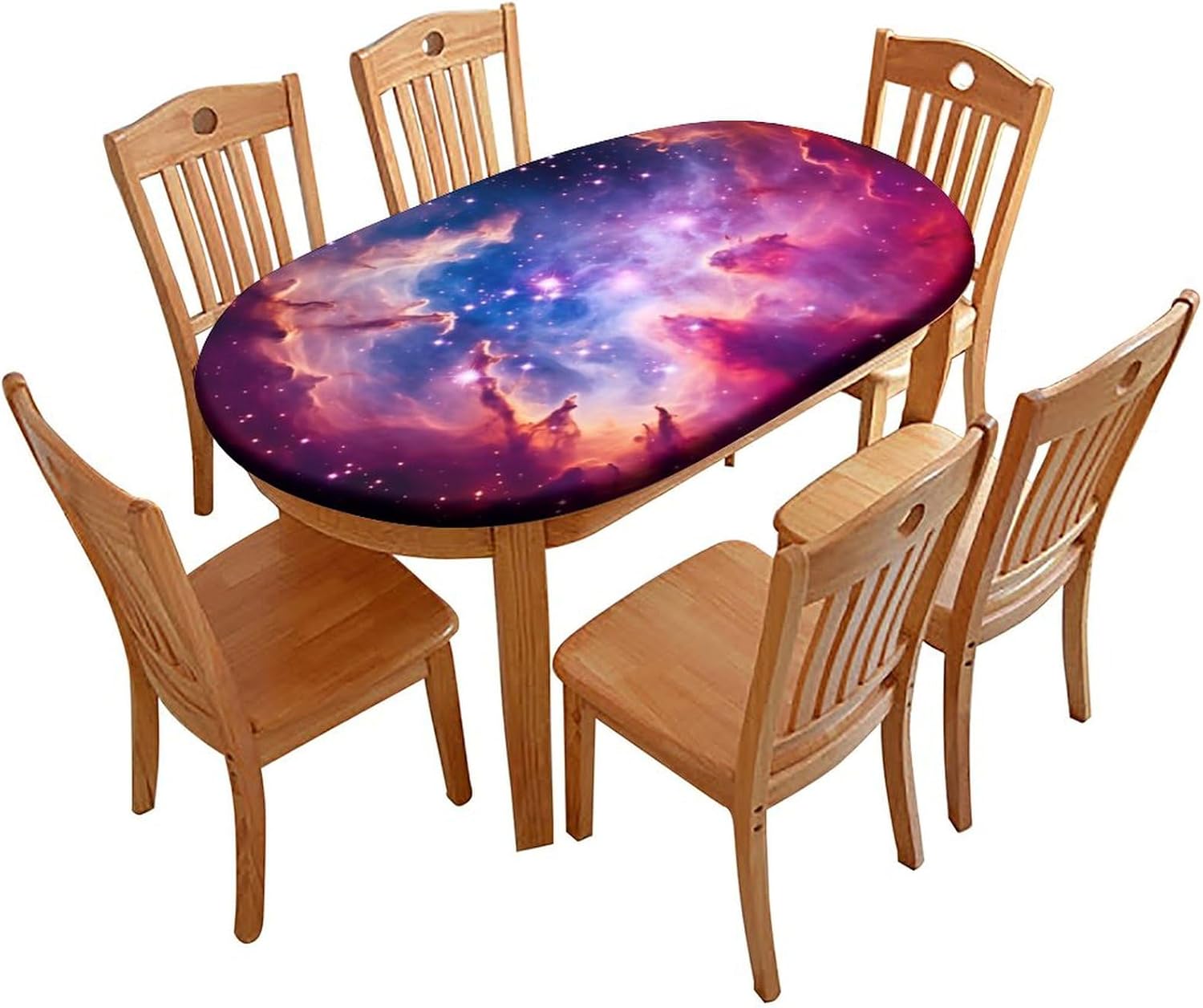 Product Title: Premium Waterproof Polyester Oval Table Cover - Multi-Purpose, Low Maintenance, Customizable Design and SizingProduct Description:Perfect Fit and Customization: This package comes with a Polyester table cover, meticulously designed for oval tables. Available sizes include 42x60 inch, 48x68 inch, 52x70 inch. the elastic edge design ensures an easy and snug fitting to any oval table within the specified size range. Our customization services also extend to the images and sizes. For any personalized needs, feel free to contact us.High-Quality Material: Our table cover boasts 100% high-quality polyester which guarantees excellent durability and resistance against damage. the material is waterproof ensuring effective protection from spills and accidents.Aesthetically Pleasing Design: Drawing inspiration from nature and cozy, our polyester tablecloth exhibits sophisticated hemmed edges and a seamless construction. Beyond serving as a mere tablecloth, it significantly contributes to the aesthetics of your home decor.Multi-Use Tablecloth: Our tablecloths deploy versatility at its best, fitting into settings in dining rooms, living rooms, kitchens, patios and garden tables. Be it daily dining or special occasions such as family gatherings, birthday parties, or fall parties, our tablecloth amplifies the allure of your surroundings.Easy Maintenance: Engineered to be spill-proof, dust-proof and wrinkle-free, our tablecloth ensures minimal maintenance. It can be machine washed in cold water and tumble dried. However, for optimum results, we recommend hand washing and air drying. Made from a premium fabric, it requires little to no ironing.Note: Our objective is to ensure you are 100% satisfied with your purchase. In case of any concerns or questions about the product, feel free to reach out to us. We are committed to providing all necessary assistance.