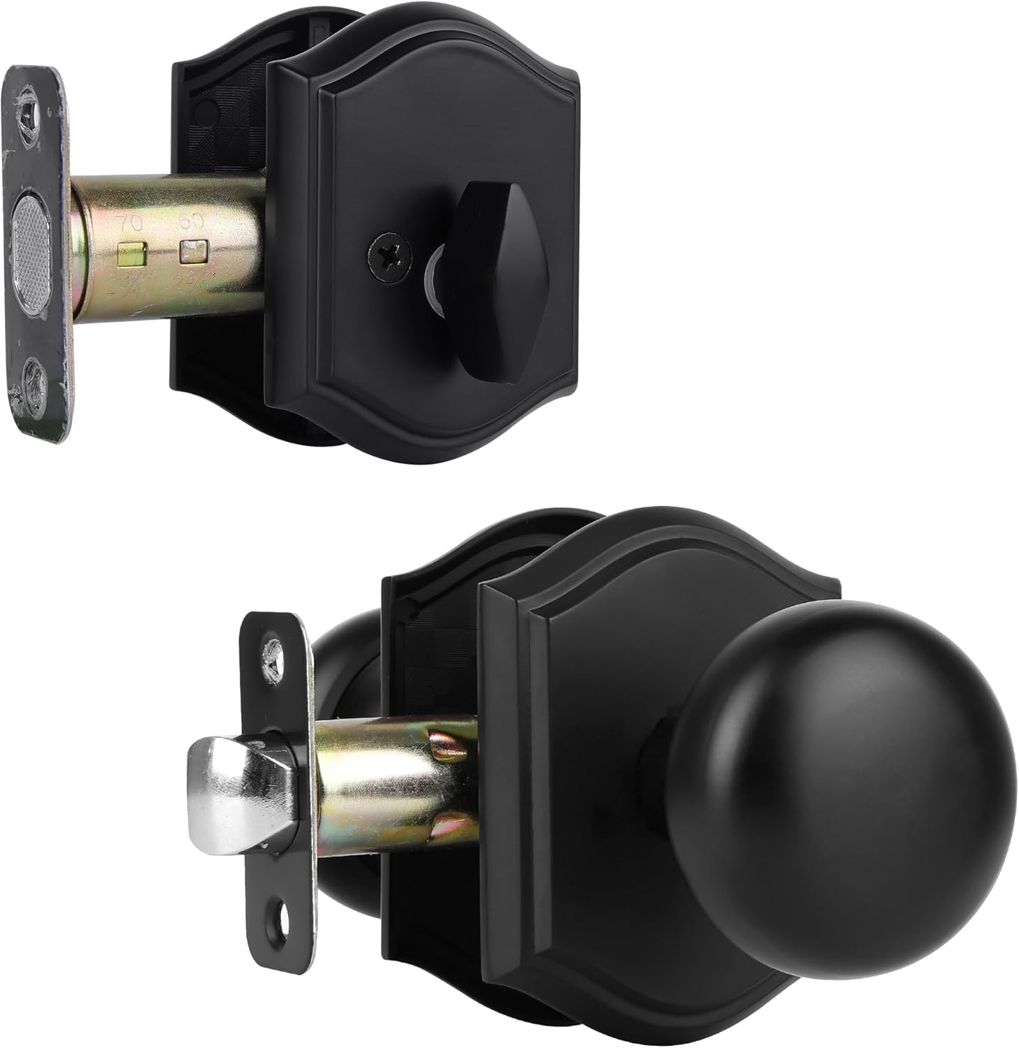 • Package for Immediate Use:Each package includes 2 single door knobs interior, 1 strike plates, 1 latches, an installation guide, and all necessary screws. These knobs are durable, easy to grip, and built to last.