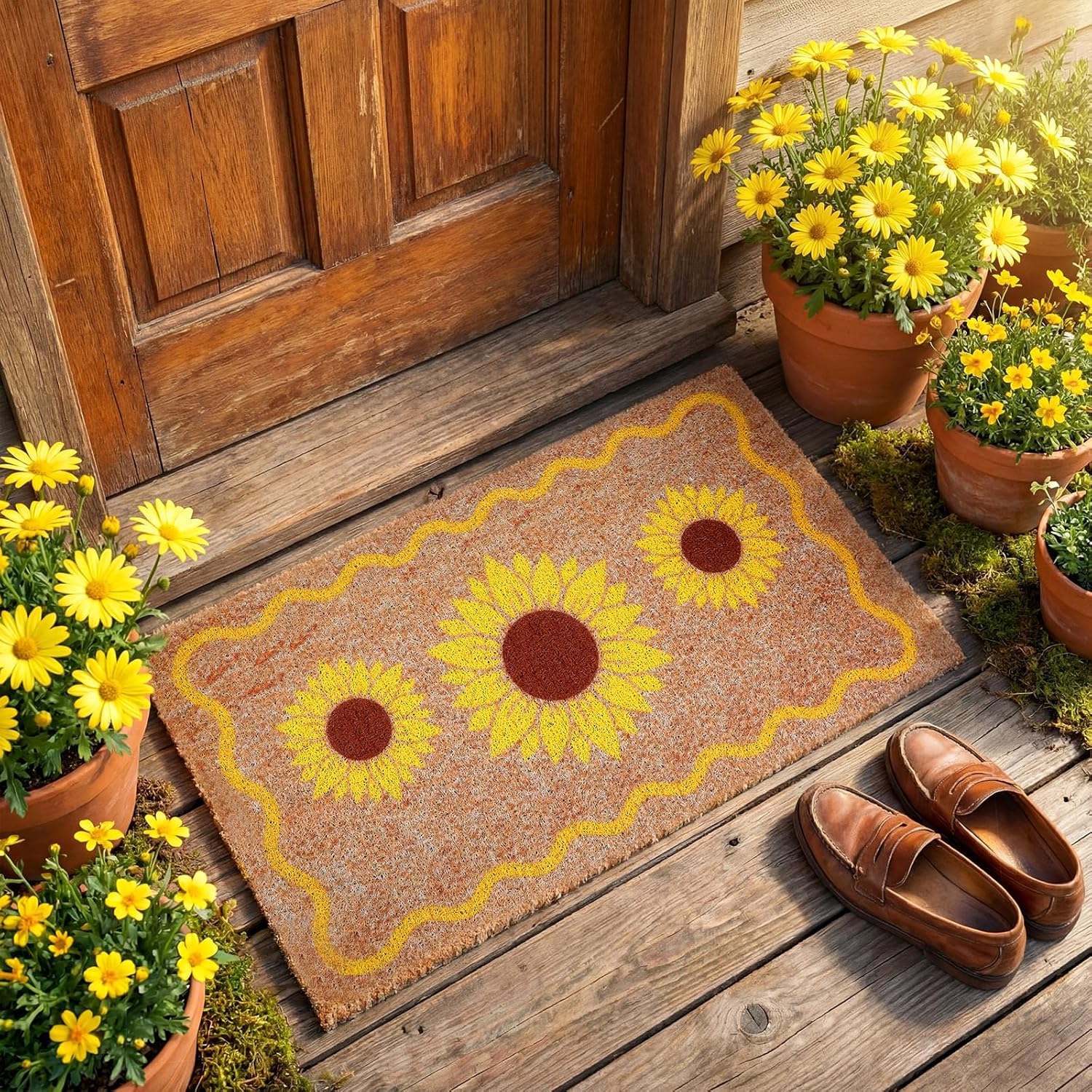 Features: This outdoor door mat makes it easy for you to clean, just shake off the dust, debris or dirt, and your entrance passage will be restored to cleanliness, it can also be directly rinsed with water. Designed for indoor and outdoor use, the easter doormat withstands seasonal changes, making it a practical choice for year-round entryway protection. Specifications: Material: faux coir (surface), rubber (backing) Color: brownish yellow, white Size: 16.5 x 30 inches Package includes: 1 x Easter doormat Manual measurement, please allow slight errors on size. The color may exist a slight difference due to different screen displays