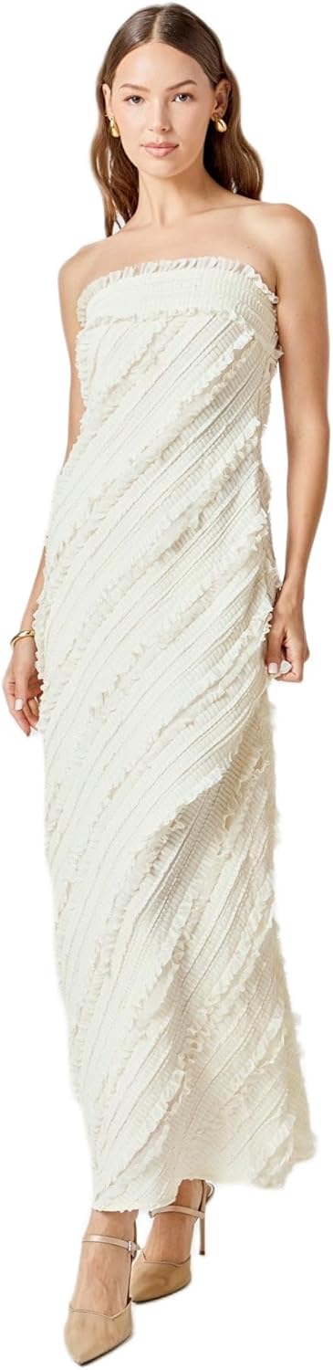 Strapless Ruffled Maxi Dress for women combines boutique styling with everyday wearability. Designed with Strapless, Maxi Length, this maxi dress delivers a flattering silhouette and easy day-to-night versatility. Ideal for date night, party, wedding guest, it brings a coquette mood to spring and summer wardrobes. Dressy feminine styling with elevated evening appeal. See product details for fabric and lining composition.
