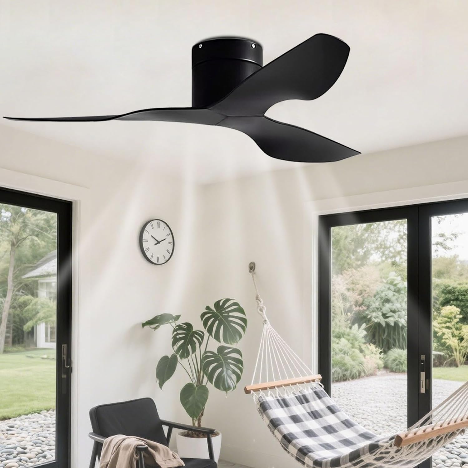 Style: Modern*Remote control: Including RemoteRemote control distance:> 30mrColor: (reference image)*Material: Metal, Solid wood fan blades *DC Motor*Fan blade: 3 pieces*Wind speed: 6 gear*Whether the wind speed is adjustable: yes (using the remote control, low / medium / high set around the third wind speed)SizeLength: 114CM / 46inHeight: 21CM / 8.2in*Use space: 10-15㎡Length: 132CM / 52inHeight: 21CM / 8.2in*Use space: 12-25㎡*The package includes:1 x Ceiling fan1 x Accessories package1 x Remote*Scene: Remote ceiling fan with no light for bedroom, living room, dining rooms, study room, children's room, balconie, small bedroom, corridor, small living rooms, etc.*Tips: The ceiling fan is easy to remove and, clean, when you do the cleaning, cut off the power, please.*If you have any question ,please kindly contact us firstly,we are always here service for you.