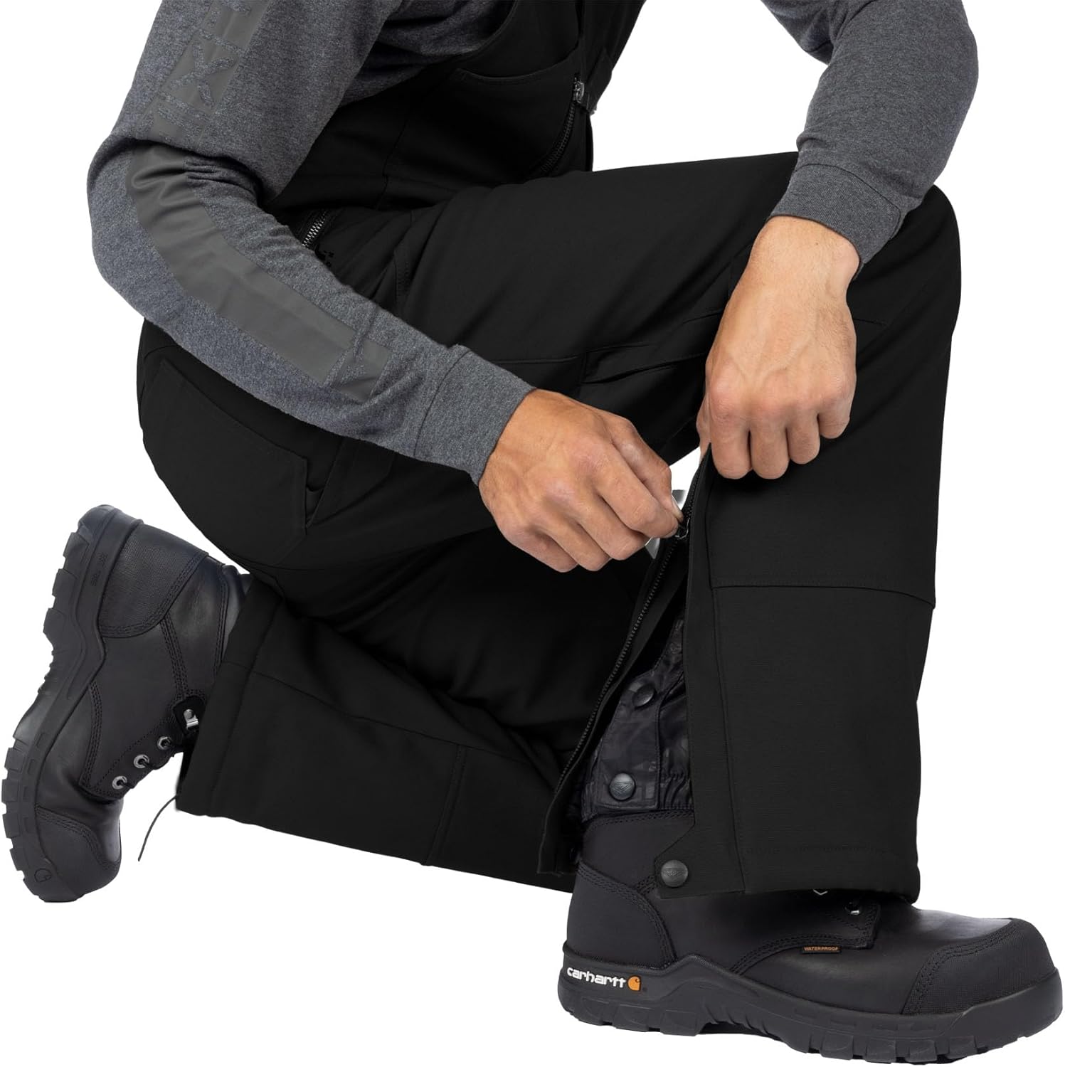 The FXR Task Insulated Overall Bib is a rugged, unisex winter bib designed for snowmobiling and cold-weather powersports. Built with durable 450gsm cotton/spandex duck canvas and a DWR finish, it combines weather protection with practical functionality for riders who demand reliable performance in harsh conditions. The bib features an 8000mm waterproof/3000g/m² breathable HydrX laminate with a fleece interior for added warmth. Fixed 150g F.A.S.T./Thermal Flex insulation provides consistent thermal protection, while the embossed nylon taffeta lining enhances durability and comfort. A metal front zipper with snap closure placket ensures secure closure, and zippered hand pockets include fleece lining for warmth. The dry seat insert adds moisture protection in wet conditions. Adjustable, removable front and back suspenders allow for customized fit, complemented by an elasticized back waist and side rib inserts with hook and loop adjusters. Full-length side leg zippers enable easy on/off over boots, while the boot storm cuff with lace retention system keeps snow out. Pre-curved knees with removable padding enhance comfort during active use, and reflective details improve visibility in low light. Key Features: 8000mm/3000g/m² waterproof/breathable HydrX laminate with fleece interior 450gsm cotton/spandex duck canvas with DWR finish for durability 150g fixed F.A.S.T./Thermal Flex insulation for consistent warmth Full-length side leg zippers for easy on/off over boots Adjustable, removable suspenders and elasticized back waist for custom fit Pre-curved knees with removable padding for enhanced comfort Boot storm cuff with lace retention system keeps snow out Zippered hand pockets with fleece lining and dry seat insert Reflective details and embroidered logos for visibility