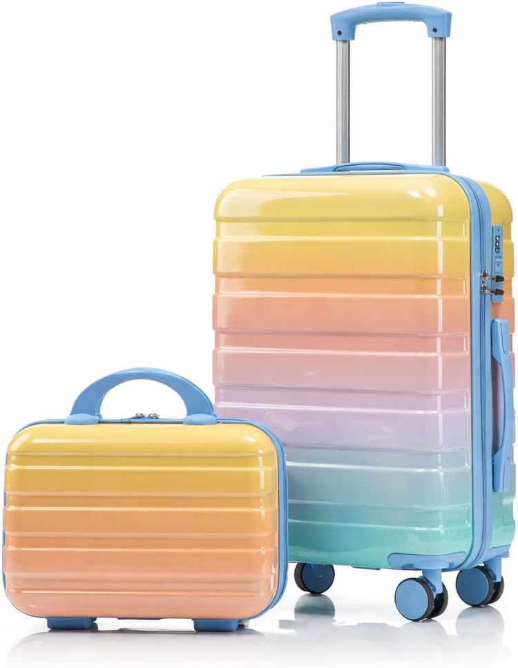 The Luxebough Gradient Color Suitcase 2-Piece Set is designed for the modern traveler seeking a perfect blend of style, durability, and functionality. This rotating wheel suitcase set features a stunning gradient finish that stands out, while its lightweight hardshell construction and smooth 360° spinner wheels ensure effortless mobility through airports, hotels, and city streets. This versatile luggage system is engineered to make packing and traveling simpler. The spacious 20-inch carry-on suitcase meets most airline size requirements, while the matching 14-inch cosmetic case keeps your beauty essentials organized and easily accessible. The interior is thoughtfully designed with secure tie-down straps and separate compartments to prevent clothes from shifting, allowing you to pack more intelligently and arrive with everything in its place. What sets our suitcase apart is its combination of premium materials and thoughtful upgrades. The tough yet lightweight hardshell resists impacts, scratches, and water, protecting your belongings. The double silent spinner wheels are reinforced for durability and provide near-silent, smooth rolling over various surfaces. Compared to bulky traditional luggage, our set offers a sleek, modern profile without sacrificing strength or capacity, making it the ideal choice for girls, women, and families. As a responsible seller, we at Luxebough are dedicated to providing high-quality products and exceptional customer service. We stand behind the durability and design of our luggage. If you have any questions or concerns about your purchase, please do not hesitate to contact us. We are committed to resolving any issue promptly and ensuring you have a completely satisfactory experience. Your complete set includes: One 20-inch gradient color hardshell suitcase with a telescopic handle and spinner wheels, and one 14-inch dedicated cosmetic case with a top carry handle.