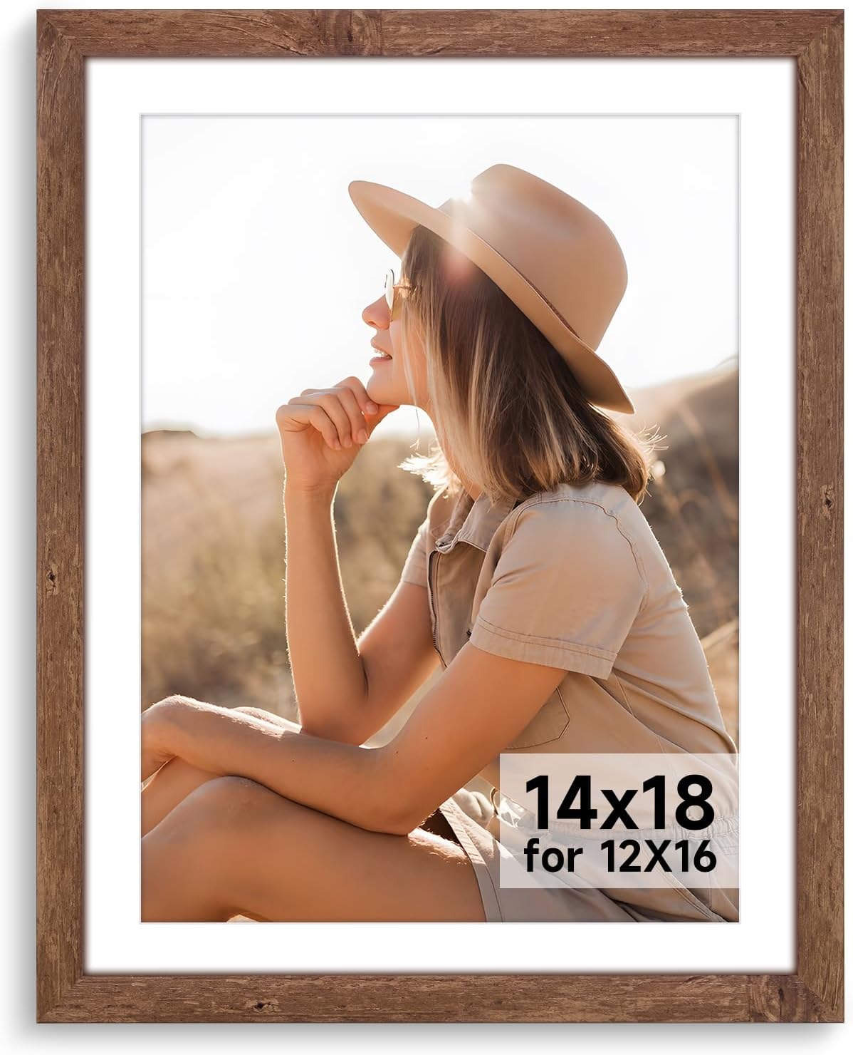 HLiWEGNS Dark Brown 14x18 Frame - Single Frame - Rustic Woodgrain 14x18 Poster Frame for Pictures 12x16 with Mat or Picture Frame Without mat for Wall Gallery Display