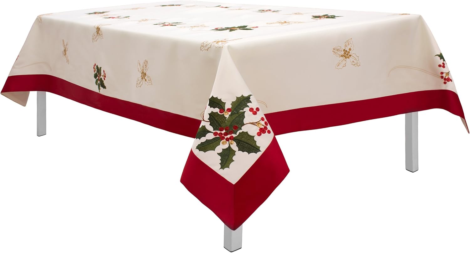 'Tis the season for a festive Holly Berries Embroidered Tablecloth. Includes (1) 70" x 104" tablecloth. Embroidery in rich, saturated colors is perfect for casual and formal entertaining this holiday season 100% polyester. Dry clean only. Imported.