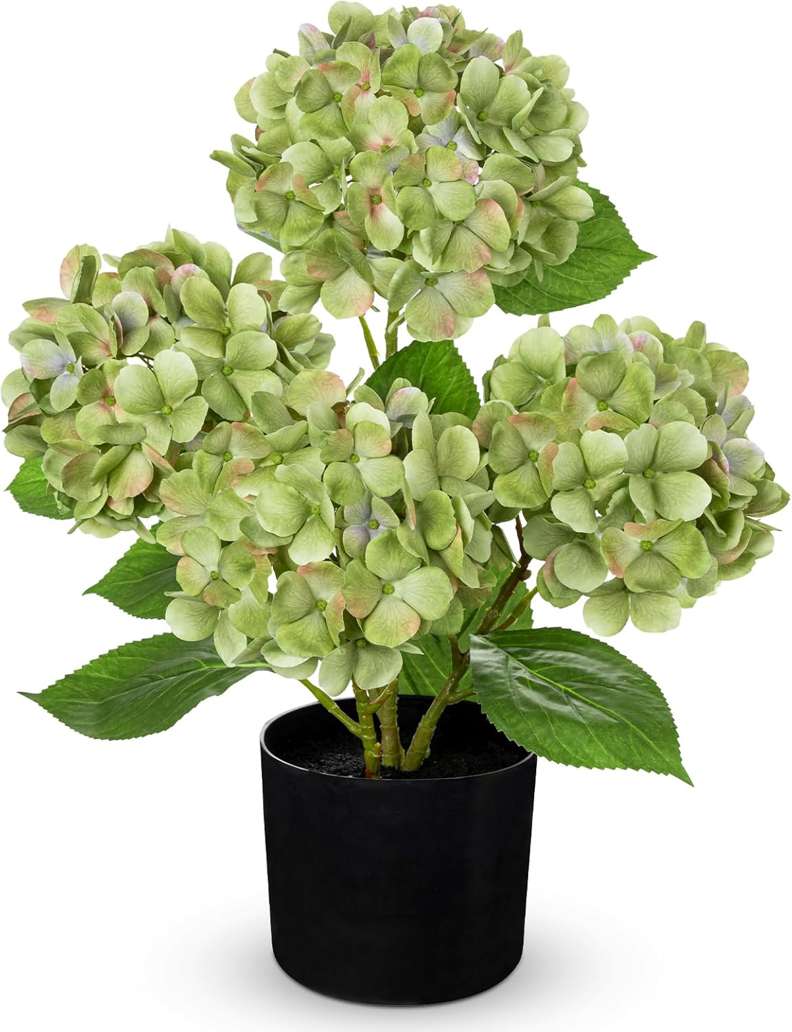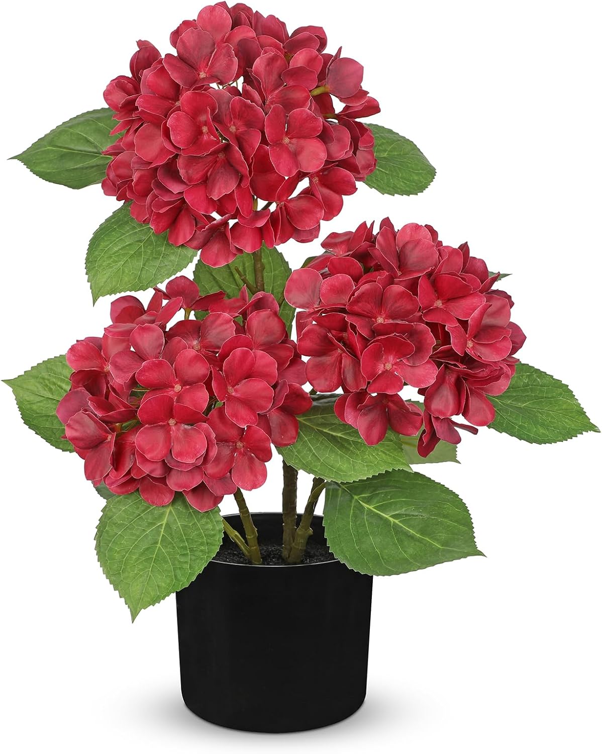 Hollyone Pink Hydrangea Artificial Flowers in Pots 19.7" Four-Head Faux Silk Hydranges Flower Arrangements for Indoor Home Office Kitchen Table Centerpieces Wedding Decorations
