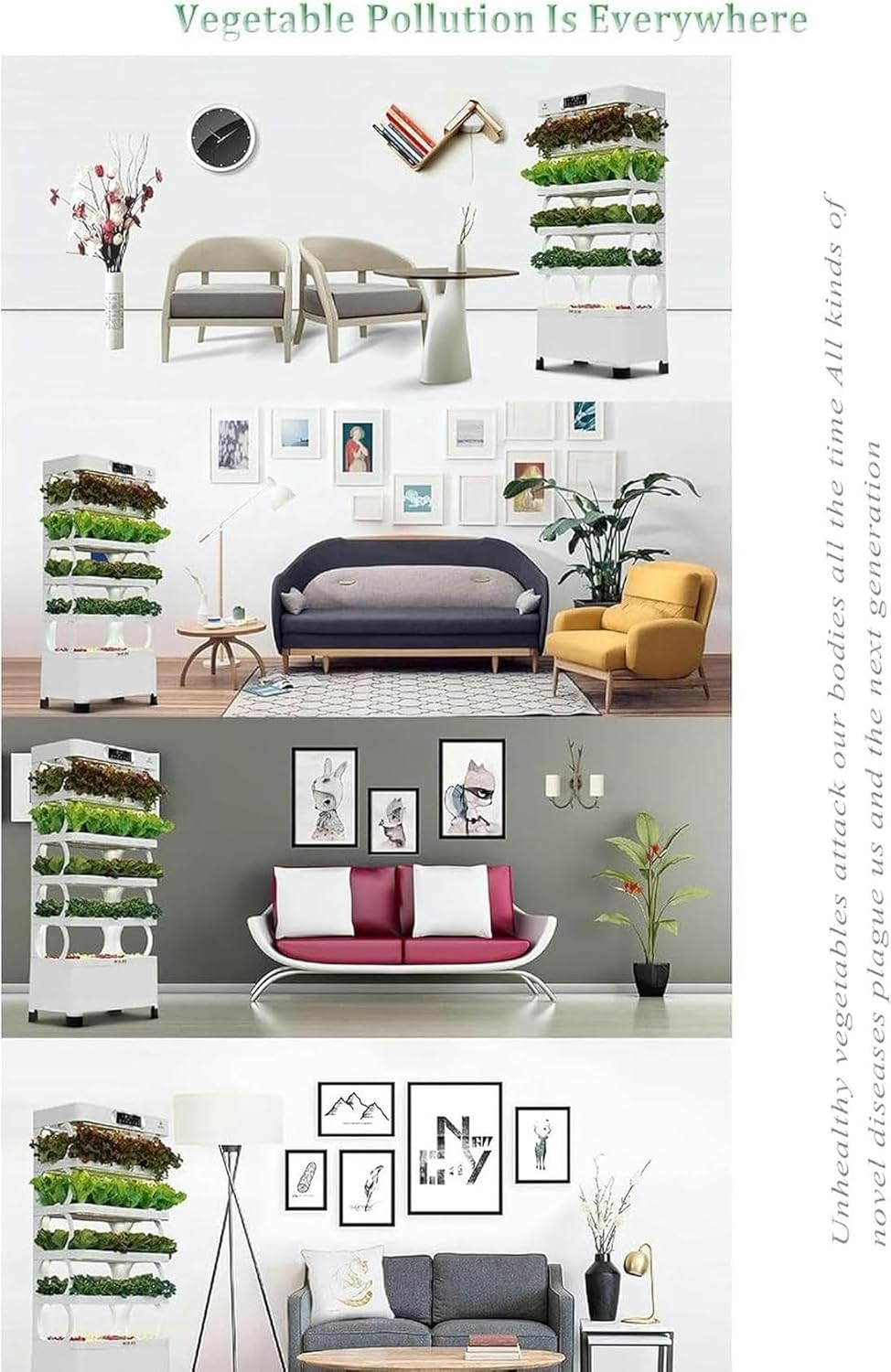 INDOOR SMART GARDEN Through harsh weather and cold of winter, the Indoor Smart Garden allows you to grow all your favorite , greens, veggies, and other plants without soil or sunlight! You can keep our garden container on a kitchen countertop, island, or shelf. Product Name: Hydroponics Growing Kits Hydroponic Technology Water Tank: 40.5L Smart Type: Digital, Electronic Product Size: 77CM*40CM*170CM Product Weight: about 30KG Floor Area: 0.3 square meters Number of layers: 5 layers - Planting Layer - 72 planting positions. - Seedling Layer - 85 nursery positions. Average Power Consumption: about 1KWH per dayLight Tube Quantity: 15 The Output Per Unit Area Is Increased By 4 Times Growth Rate Increased By 30% 95% Water Saving Charming Advantage: Full organic vegetable Annual Turnover Vegetable: 150-200 KGS Vegetable per Circle Period: 21-30 days Plant Condtion: Soilless culture and hydroponics Suitable Vegetable : 38 types suitable for Hydroponics Suitable Places: home vegetable, restaurants, hotels, offices, gyms, etc. Application: indoor and outdoor even school education When shipping, send the product of the corresponding specification according to your country.
