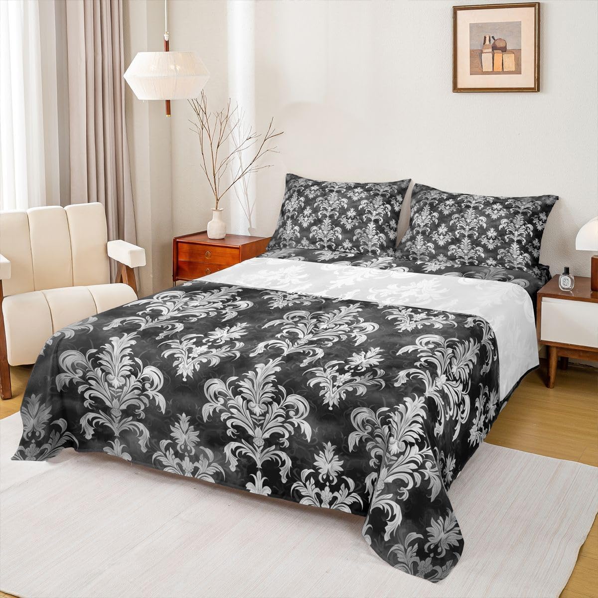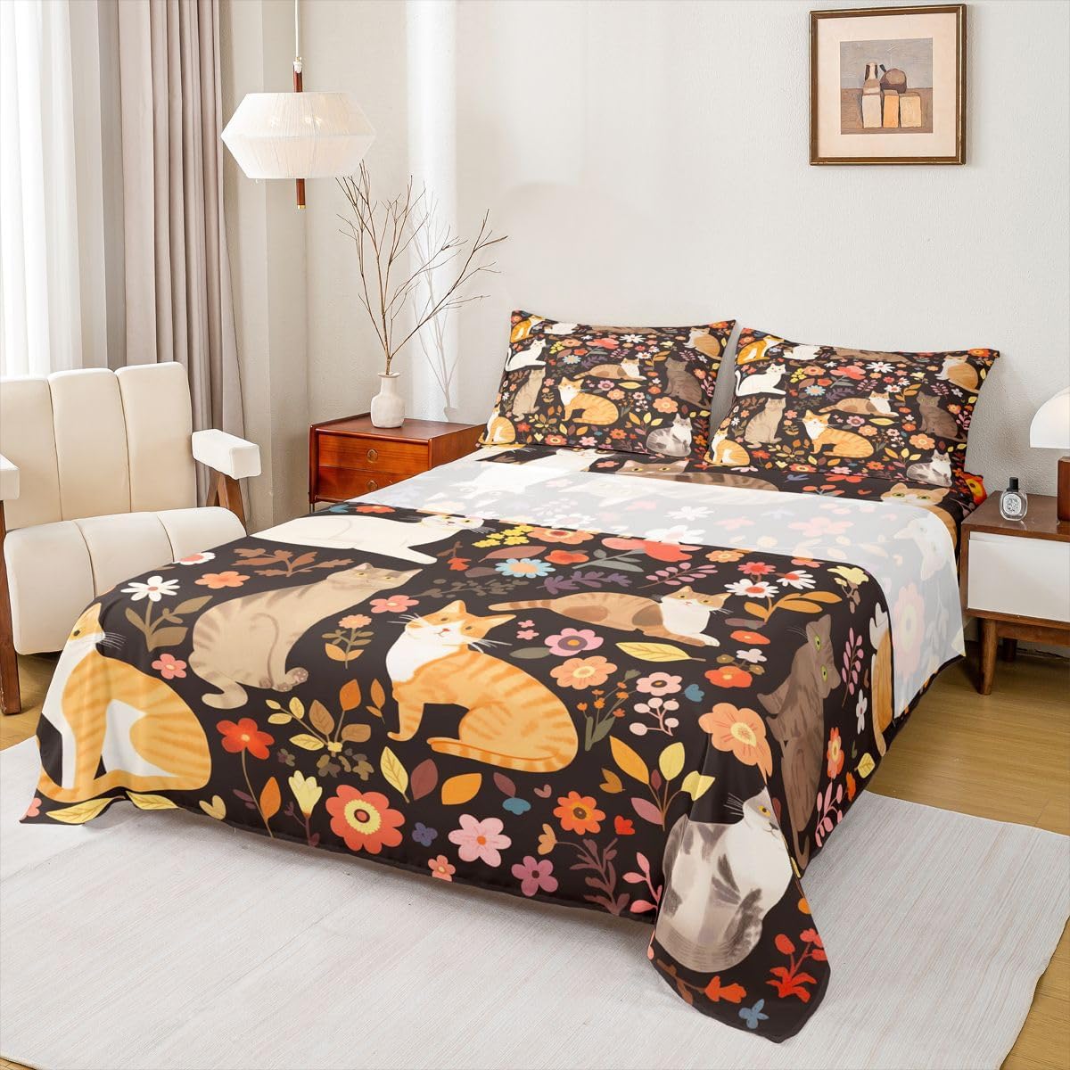 Our bed sheet is made of polyester fabric, lightweight and soft; stylish design is very suitable as room decoration for boys and girls; keep warm in winter and cool in summer; create a comfortable sleeping environment to make you fall asleep all night Range of size 1 twin fitted sheet 39 inch x 75 inch x 16 inch and 1 twin flat sheet 66 inch x 96 inch and 1 standard pillowcase 20 inch x 30 inch 1 full fitted sheet 54 inch x 75 inch x 16 inch and 1 full flat sheet 81 inch x 96 inch and 2 standard pillowcase 20 inch x 30 inch 1 queen fitted sheet 60 inch x 80 inch x 16 inch and 1 queen flat sheet 90 inch x 102 inch and 2 standard pillowcase 20 inch x 30 inch 1 king fitted sheet 78 inch x 80 inch x 16 inch and 1 king flat sheet 90 inch x 106 inch and 2 standard pillowcase 20 inch x 36 inch