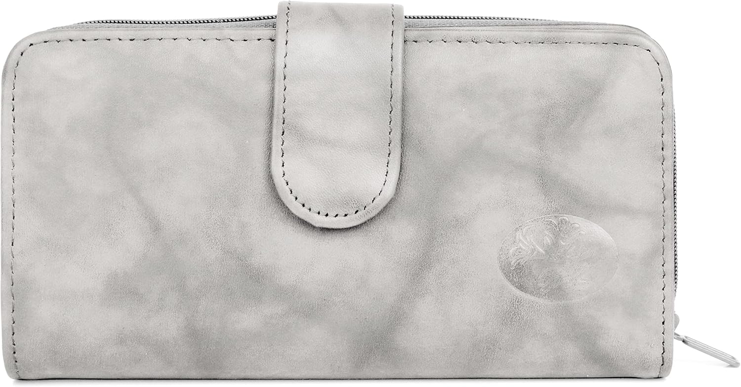 Elevate your style with our Julia Buxton Heiress Checkbook Wallet, crafted from premium Crunch Leather in a rich Navy color. This bi-fold wallet boasts a spacious, zip-around compartment and a snap closure compartment, ensuring secure storage for your essentials. Organize your cards with 7 slots and an ID window, while the removable checkbook and inner zipper pocket provide additional functionality. The embossed floral pattern adds a touch of elegance, and the RFID protection ensures your cards are shielded from unauthorized scanning. Measuring 7" x 3.75" x 1.5", this compact wallet is perfect for everyday use. Care for it with a simple dry cloth clean.