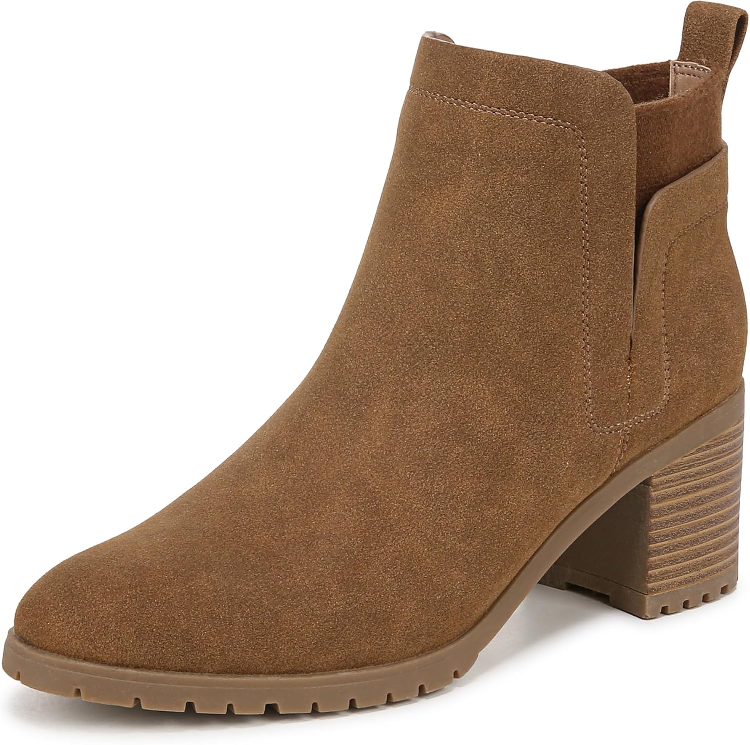 Look cool and feel your best in these comfortable ankle boots for women with built-in stretch. Microfiber upper with a round toe, side zip, back pull tab for easy on/off, stretch gore for added comfort, lug sole, and faux stacked block heel. Linings crafted with partially recycled materials. Soft System® comfort package provides all-day support, flex, and cushioning. Get next-level comfort with Velocity 2.0®, featuring luxe linings, superior cushioning, and a premium insole with shock absorption & pressure distribution. Traction sole provides you with extra stability. Just Right Height 2 1/2 inch block heel.