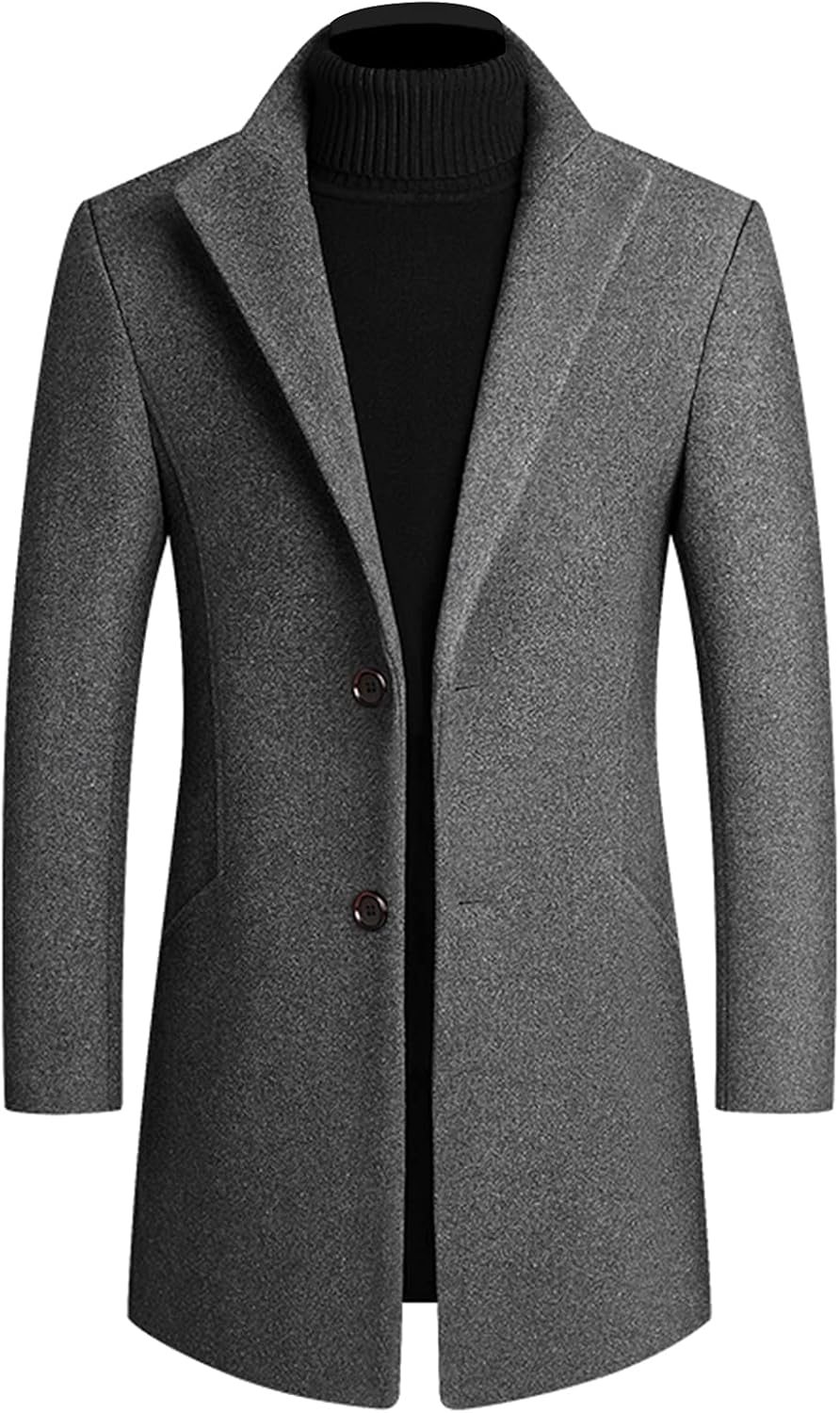 Lu's Chic Men's Wool Blend Trench Coat Single Breasted Overcoat Button Down Dress Pea Coats Warm Long Sleeve Lapel Collar Split Outfit Fashion 2021Size ChartTag size M fits US size 2XSTag size L fits US size XSTag size 2XL fits US size STag size 3XL fits US size MTag size 4XL fits US size L