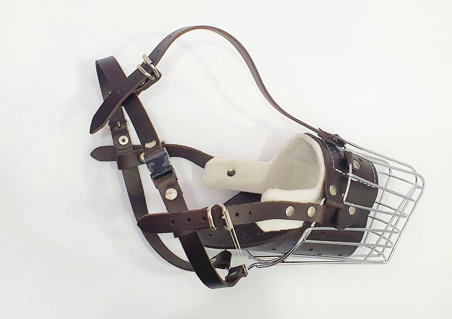 Product Description New and Improved Galvanized covered with Black or Spotted - rubber polymer The muzzle has many advantages: no risk of freezing nose or tongue to metal parts muzzle rubber absorbs the impact force well insulated from adverse external factors a lifetime 50% The snout's upper part inside the muzzle is made of leather, but is also lined and padded with felt for the dog's comfort . Having trouble during vet or groomer visit? Get this muzzle and solve the problem Need reliable products recommended by Vets, Dog Trainers and Behaviorist .This muzzle is the professionals pick Looking for a solution to discourage your dog from biting, chewing and eating unwanted objects? No more dangerous rocks or sticks with this muzzle Are you looking for a long term solution? With this muzzle on your dog will breath freely, pant and drink water Does your dog need a muzzle that feels like he is not actually wearing it? This wire - basket dog muzzle can be worn while the dog is walking, playing or running. Tired of weak ,one day plastic or nylon muzzles? This dog muzzle is made of chrome wire and leather - strength and durability Fed up with non-adjustable straps or straps stretching problems? The straps of this muzzle are adjustable and won't stretch . The most Effective way of measuring a dog for a muzzle is to check both the Length and Circumference of its snout. Length Measure the length of your dog's snout by placing the "zero" end of the measuring tape below the eyes. Stretch the measuring tape straight down the middle of your dog's snout and note the measurement at the very end of the dog's nose. Circumference Circumference around snout below eye line in inches or centimetres .To the result should be added extra space to be able to freely open mouth K9 Police Style Muzzle