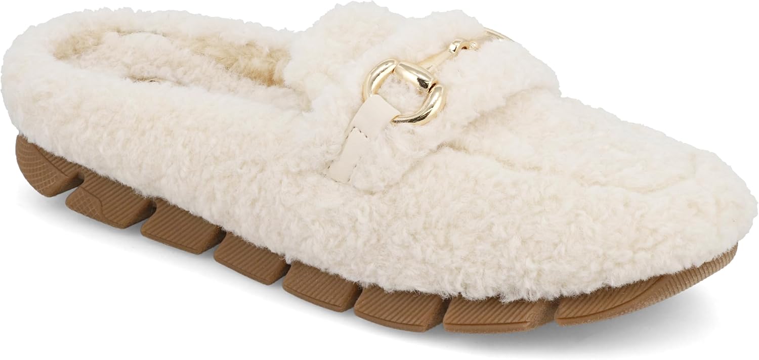 Slip into comfort with COCOA. A slip-on mule crafted from plush materials and faux sherling lining. Finished on a 1.4-inch rubber outsole and a gold buckle accent on top.