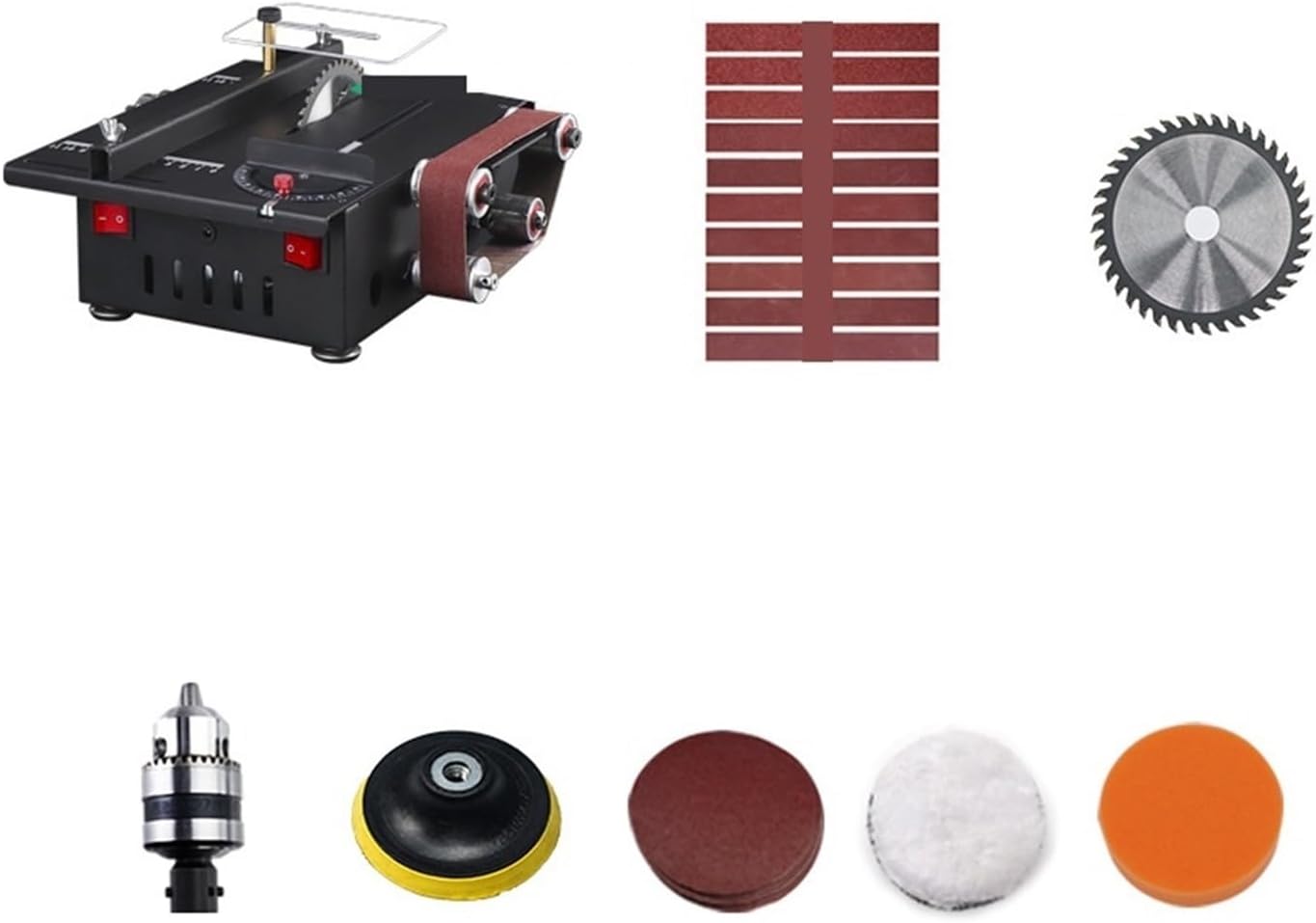 Machine size :255mmx290mmx100mm adaptive sand belt size: 30mmx420mm Saw blade diameter: 110mm (4 inches) Maximum cutting depth 30mm Power 300W Drill chuck holding range1.5 mm-10mm