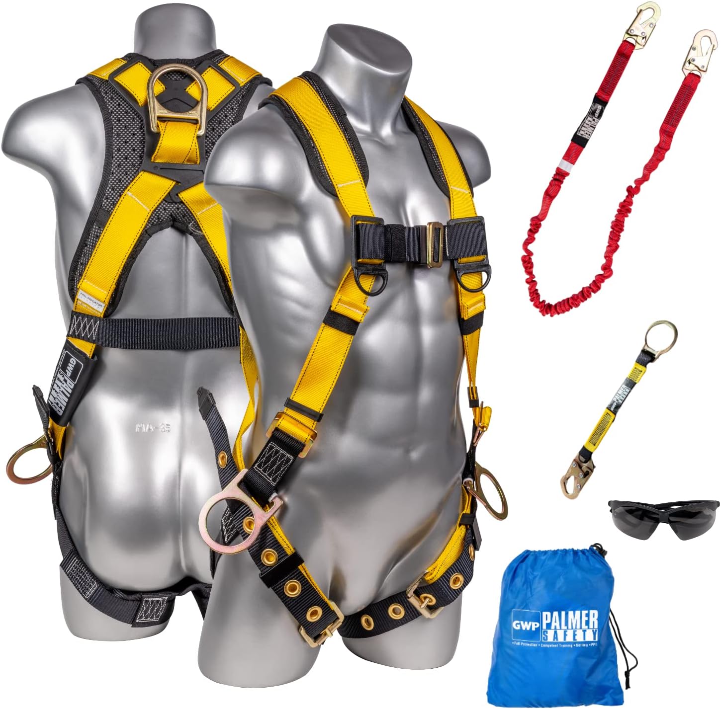 | Included Components | 5pt Safety Harness, Safety Lanyard, D-Ring Extender, Safety Glasses & Kit Bag |