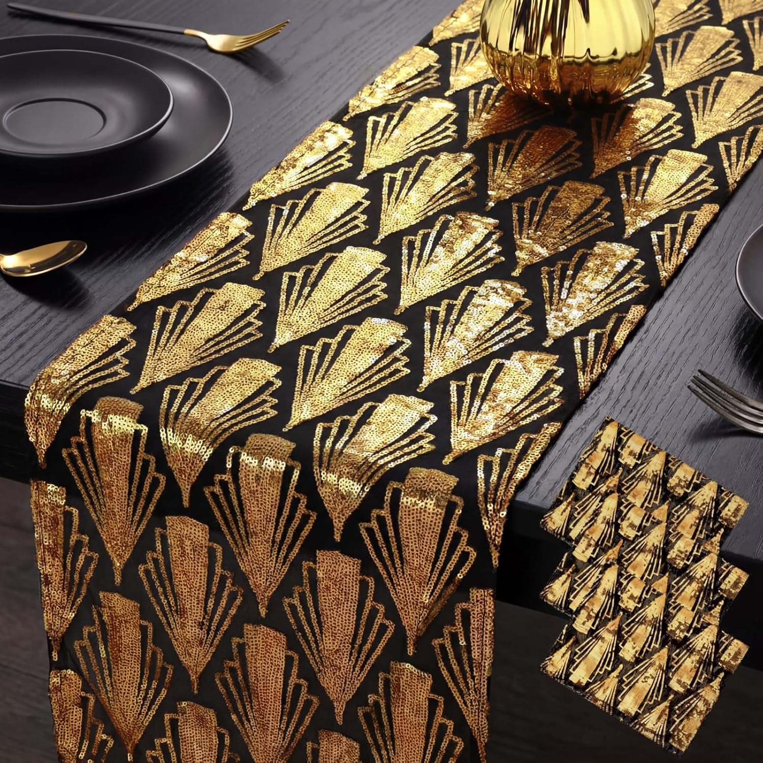 • Elegant 1920s Design: this black and gold table runner, injects the glamour of the 1920s into your party activities, and the exquisite sequin details capture the essence of that era known for glamour and luxury; It is embellishment for your retro 1920s themed party or speakeasy celebration