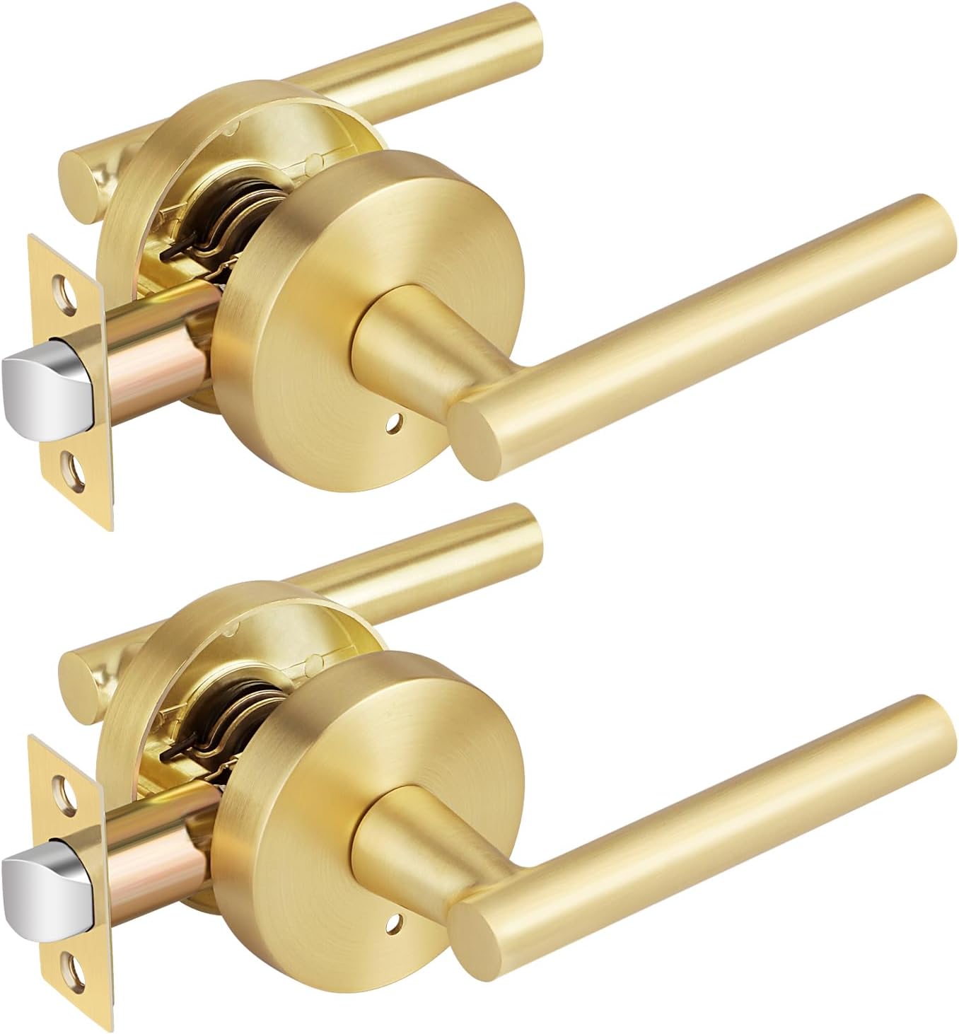 • Reliable Quality: Made of zinc alloy, this gold door handle is not only sturdy and durable, but also waterproof and rust-free; Its thick electroplated coating also makes its surface won't be easily scratched, so you can use it with confidence even if you have pets at home; Besides, the mechanical mechanism operates smoothly, eliminating the worry of getting stuck; Once installed correctly, it is virtually noiseless, allowing you to enjoy your time without any disturbance