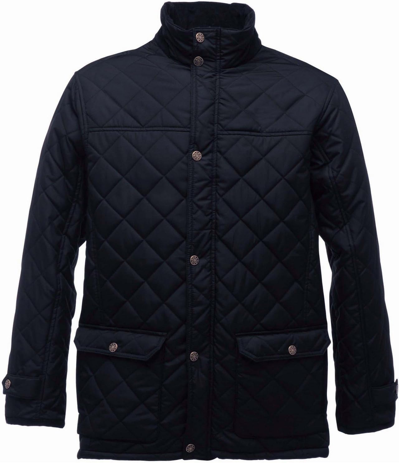 Quilted Water Repellent Tyler Jacket by Regatta. Quilted water repellent micro poplin. Thermo-Guard insulation. Polyester taffeta lining. 2 Lower patch pockets with side hand warmer entry. Back vents with stud fastening. Internal side seam zipped embroidery access. S, M, L, XL, 2XL, 3XL (37/38", 39/40", 41/42", 43/44", 46/48", 49/51")