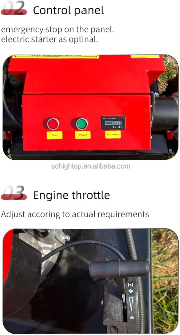 Product Name:Remote Control Lawn Mower Warranty:1 Year Video Outgoing-Inspection:Provided Machinery Test Report:Provided Core Components:Engine Use:Cut Grass Place of Origin:Henan, China Key Selling Points:High Safety Level Machine Weight:248kg Cutting Width:1000mm Starting Mode:Hand Pull/ Electric Start Cutting Height:20-150mm Product Description: The remote control lawn mower is an intelligent remote control lawn mower. This product uses a first-line power Loncin four-stroke engine, which has low energy consumption and can walk freely on hillsides. It is suitable for forestry, grassland, road greening, river embankments, flood control projects , Agriculture, forestry, orchards, vegetables, greenhouses, farms, home gardens and other places to open up wasteland and weeds, packaging and selling hot at home and abroad. Packaging & Shipping: 1. For 1 set lawn mower order, wooden box packing 2. For the container orders, 36 set for 20GP container Our Services: 1. 1 year warranty; 2. Online guidance; 3. Provide repair videos; 4. Spare parts is available all the time. What Else Do We Have? We can supply excavators, wheel loaders, lawn mowers, spray machines, tractors, skid steers loader, etc. If you need others, we can help you find them too.