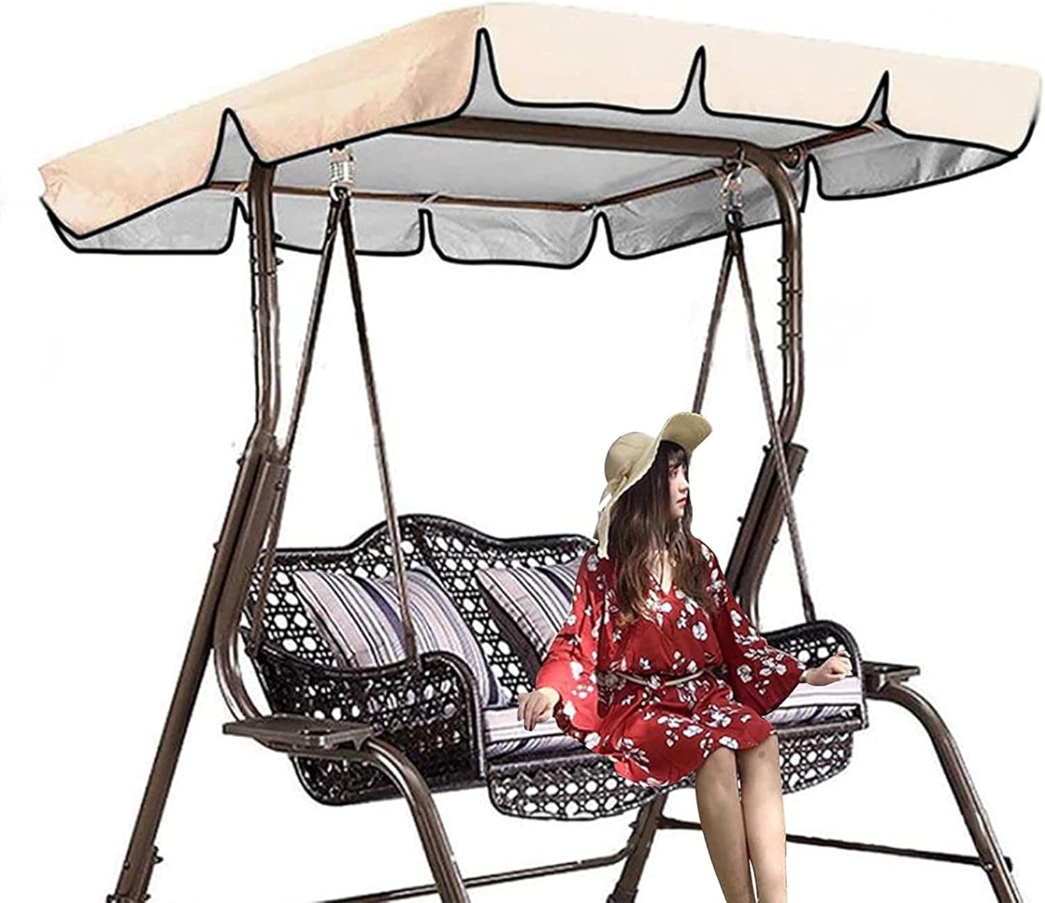 Replacement Canopy for Garden Swing, Waterproof Swing Canopy Cover, UV Protection Patio Hammock Cover, Swing Canopy Cover Sunshade for Garden Outdoor,Beige,164 * 114 * 15cm