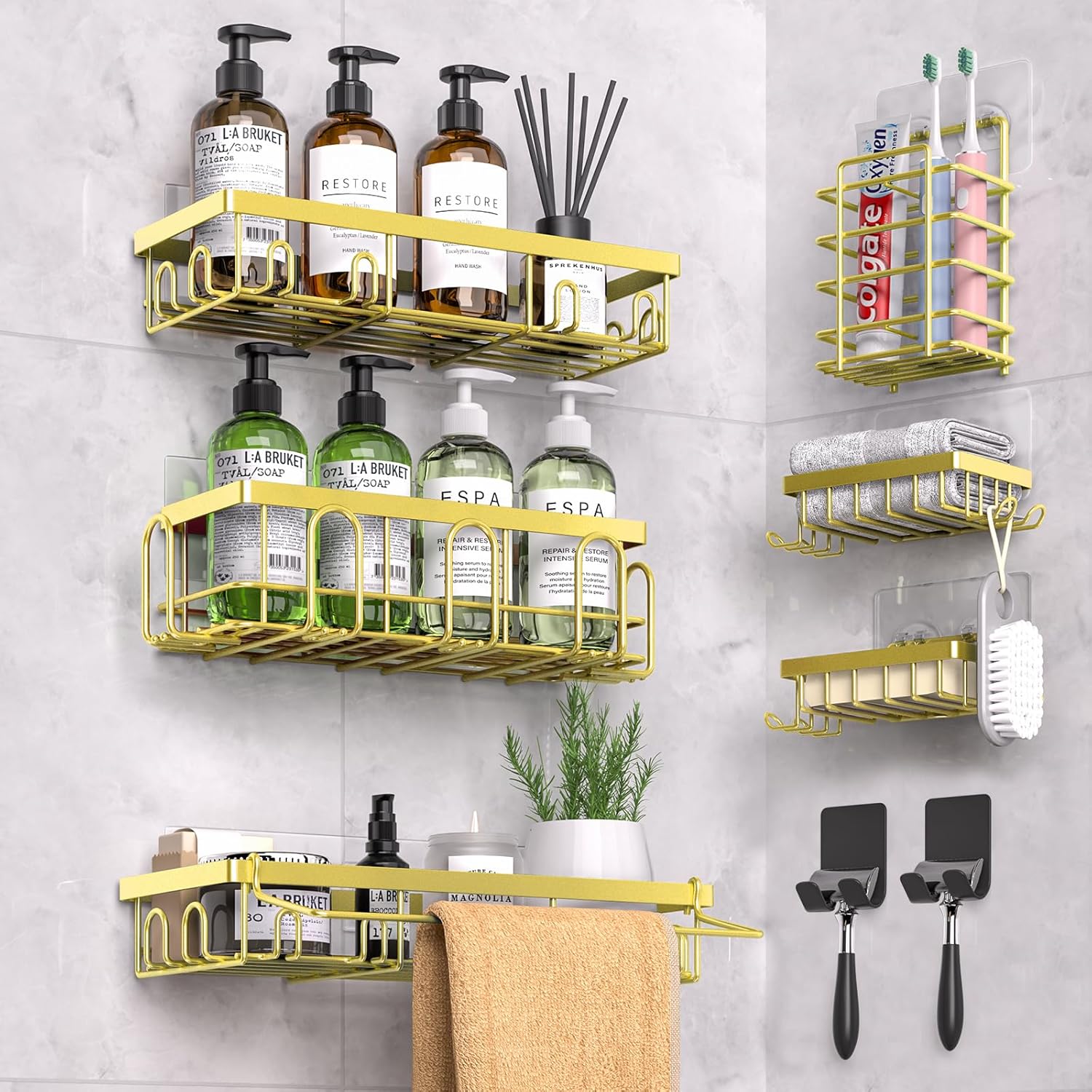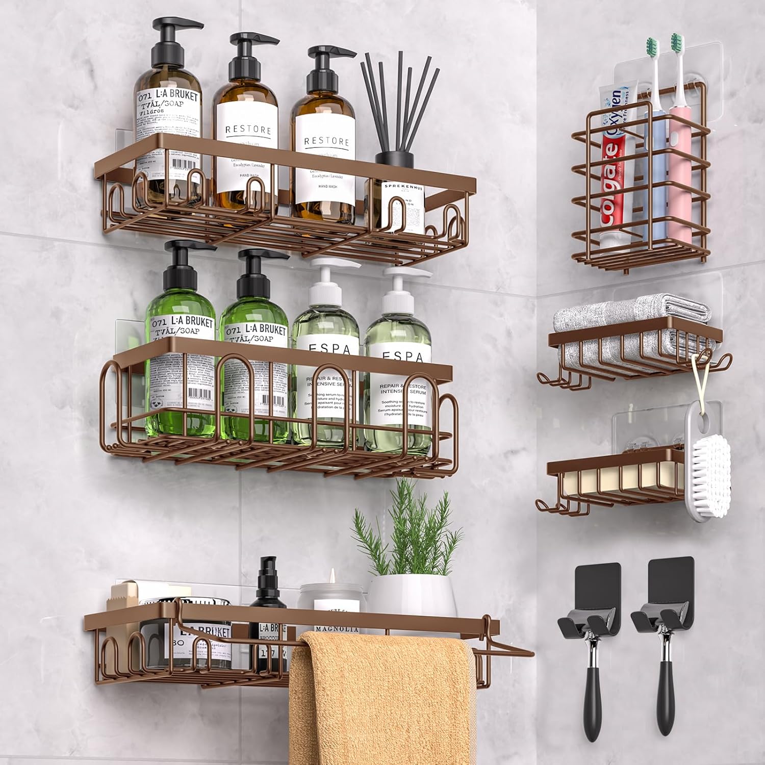 Shower Caddy 9 Pack,Adhesive Organizer for Bathroom Decor Accessories & Kitchen Storage,No Drilling,Large Capacity,Rustproof Stainless Steel Organizer,Home Decor Shelves
