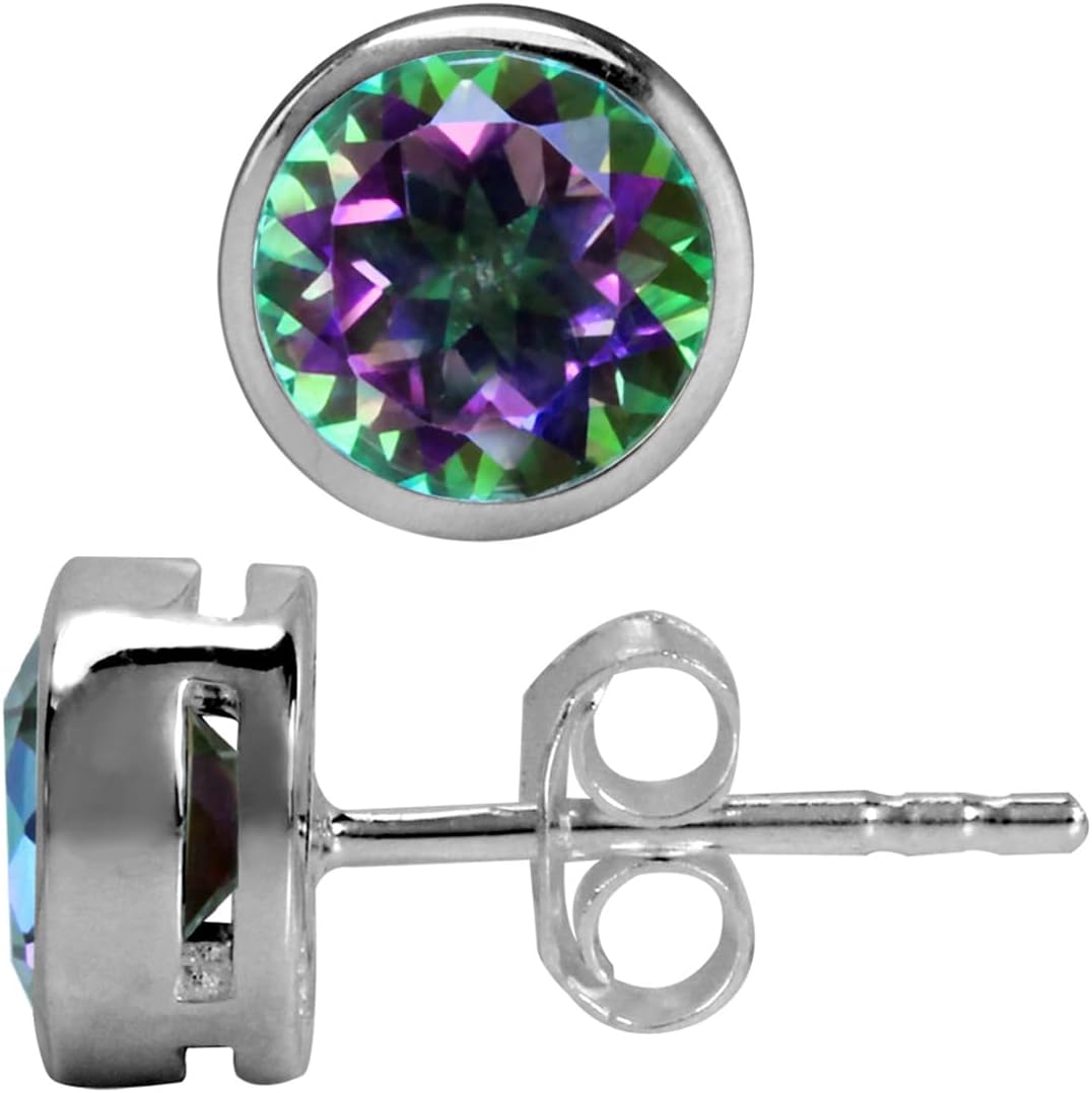 Silvershake 6MM Round Shape Bazel Set Birthstone Gemstone 925 Sterling Silver Stud Post Earrings Jewelry for Business Women or Teens