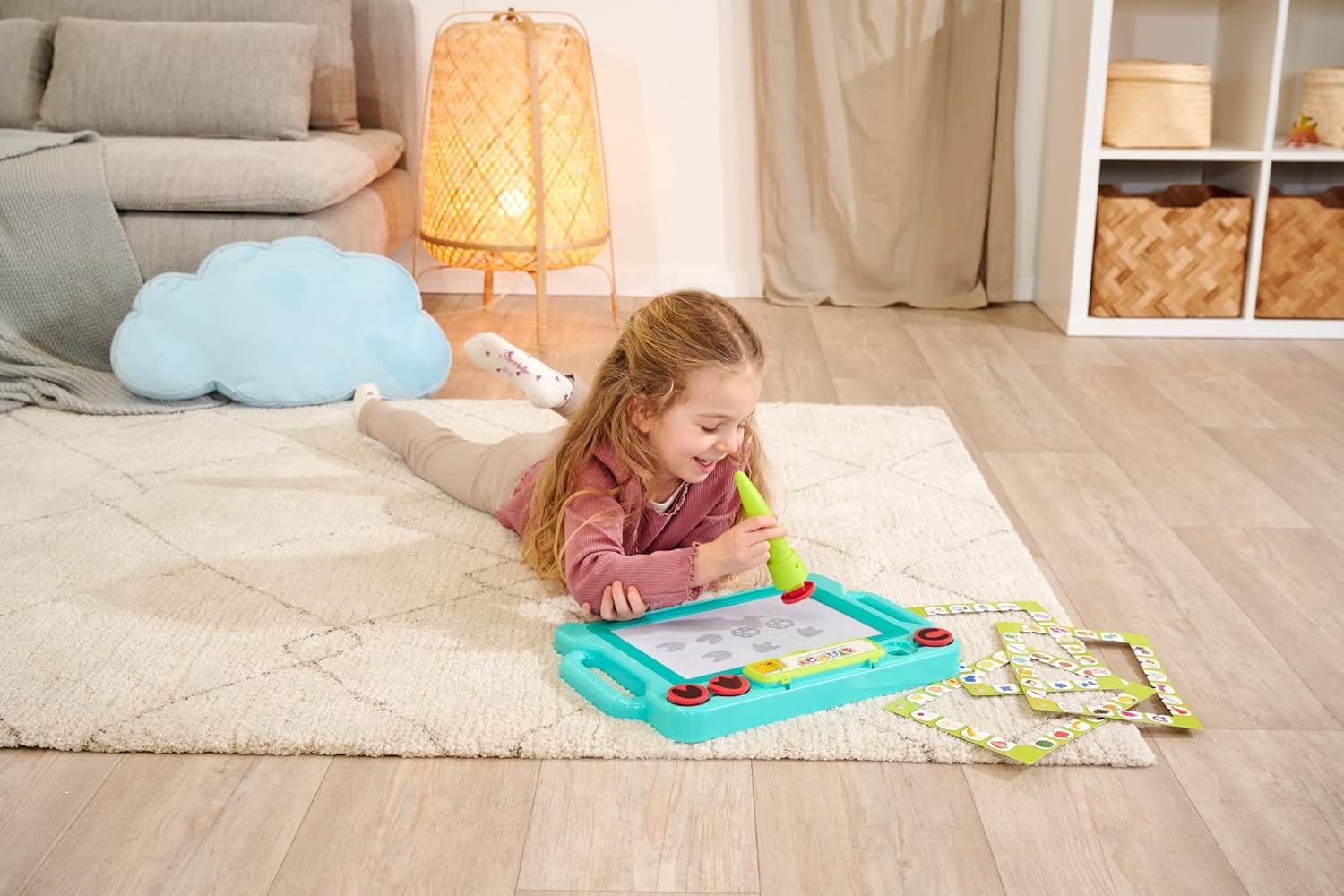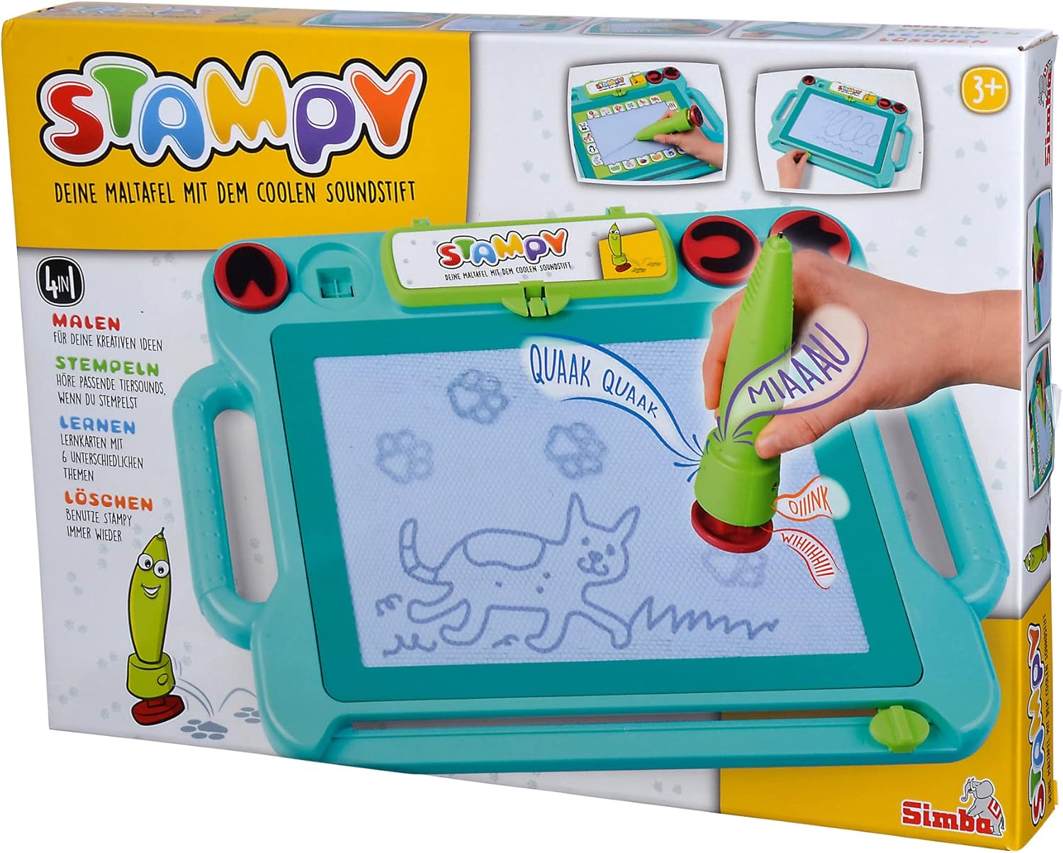 The Simba Magnetic Drawing Board offers creative and mess free drawing fun for children from 3 years. With the attached magnetic pen, kids can create pictures, shapes, letters or first writing attempts on the reusable drawing surface. The included magnetic stamps add extra design options and encourage imaginative artwork. Thanks to the practical slide eraser, drawings can be removed in seconds, allowing children to start again immediately. This simple mechanism supports independent play and invites endless experimentation without the need for paper, ink or colors. The board helps develop fine motor skills, hand eye coordination and early writing practice in a playful way. Lightweight and easy to handle, the magnetic sketch pad is suitable for use at home or while traveling. It combines creativity, learning and repeated play in one practical toy that keeps children engaged while supporting early development.